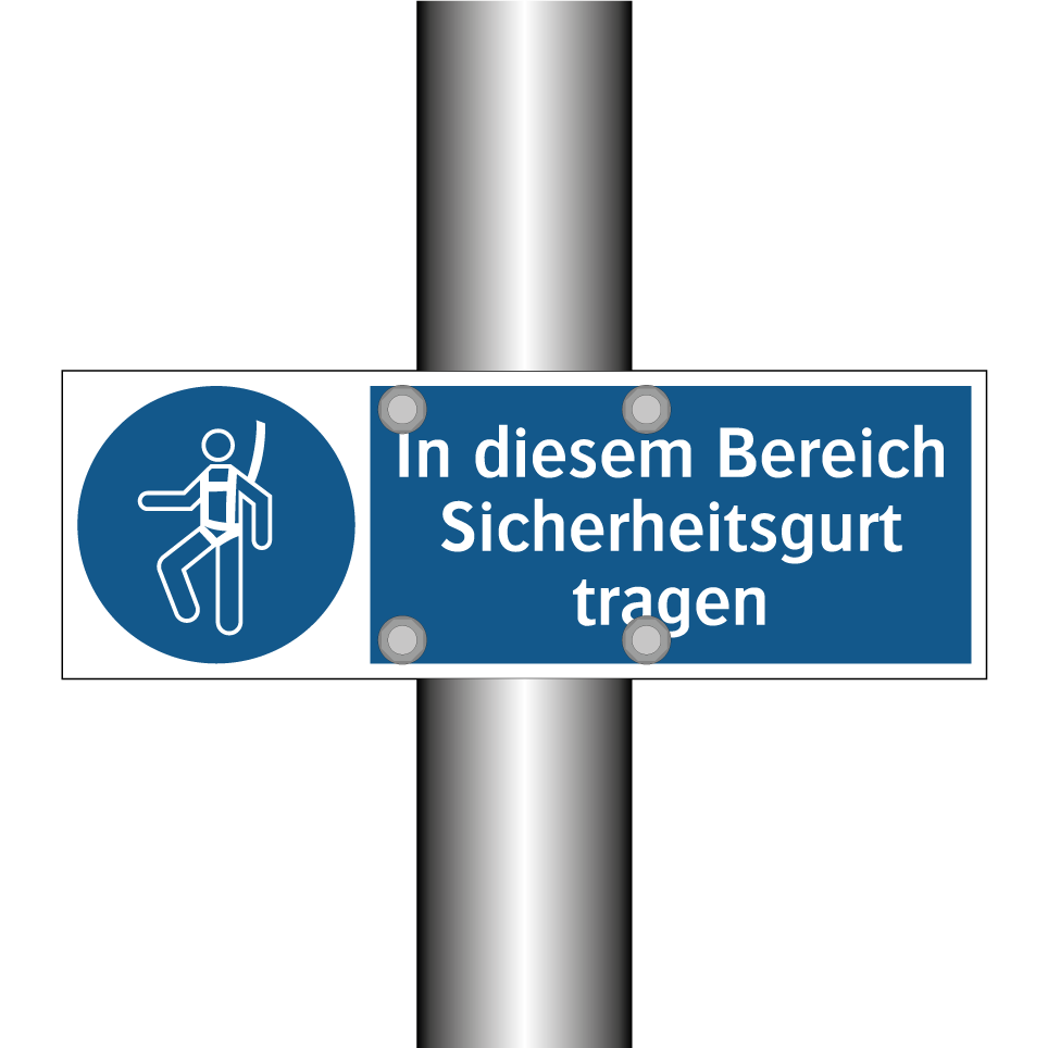 Gebotsschild mit dem Text In diesem Bereich Sicherheitsgurt tragen