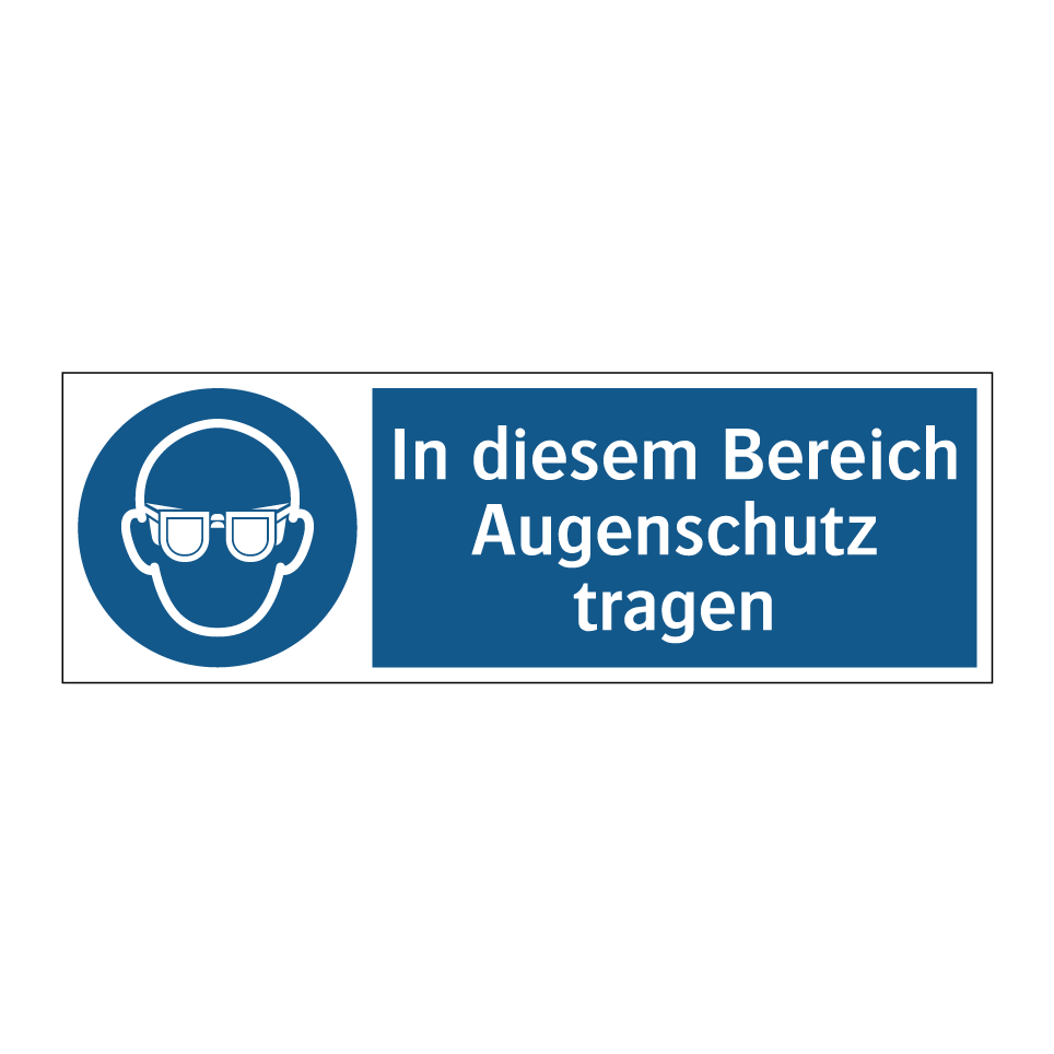 Gebotsschild mit dem Text In diesem Bereich Augenschutz tragen