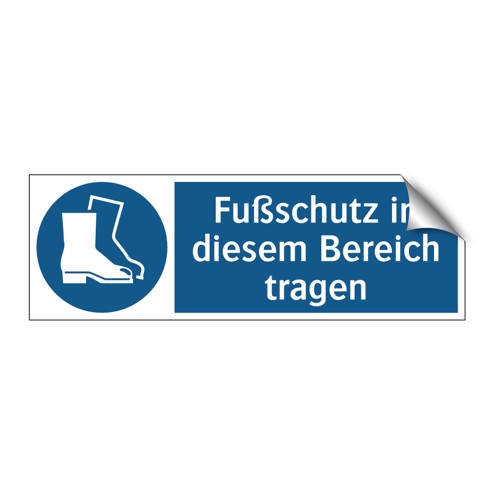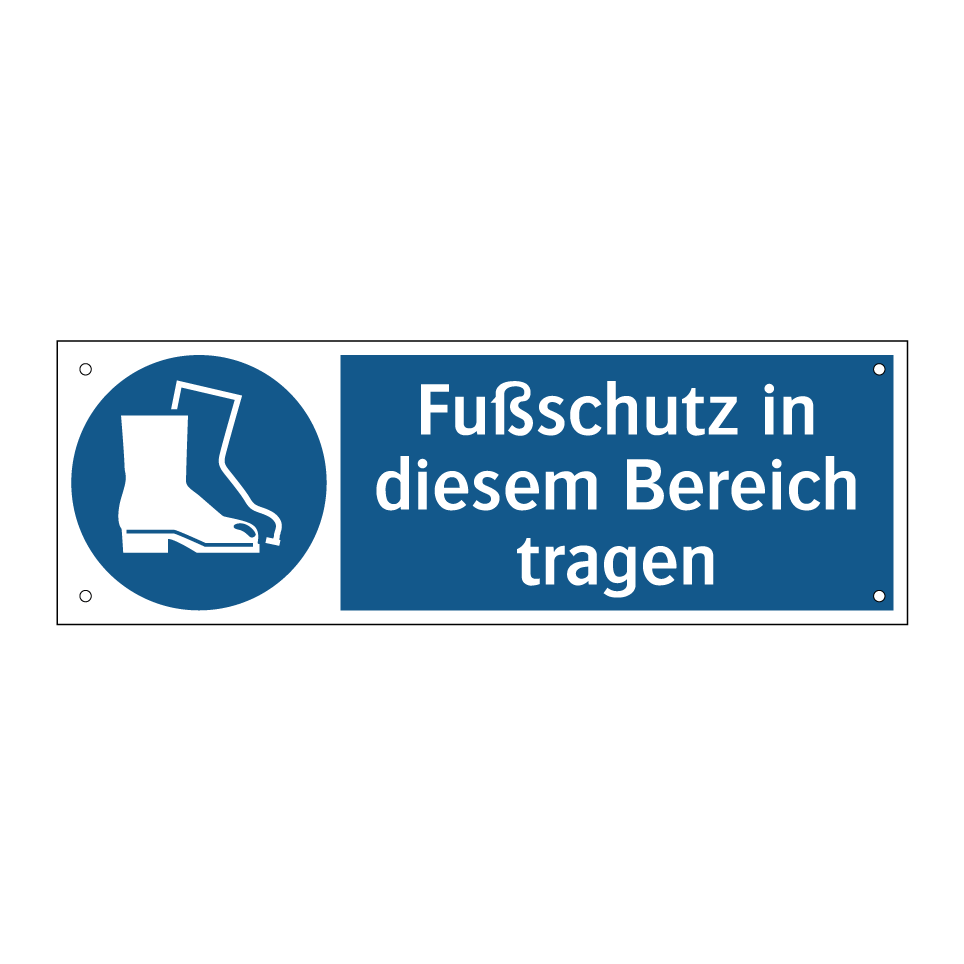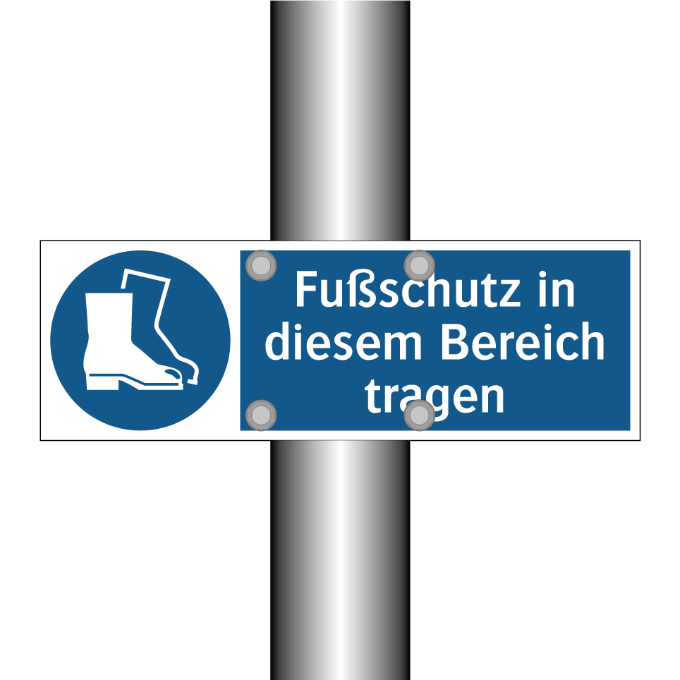 Gebotsschild mit dem Text Fußschutz in diesem Bereich tragen