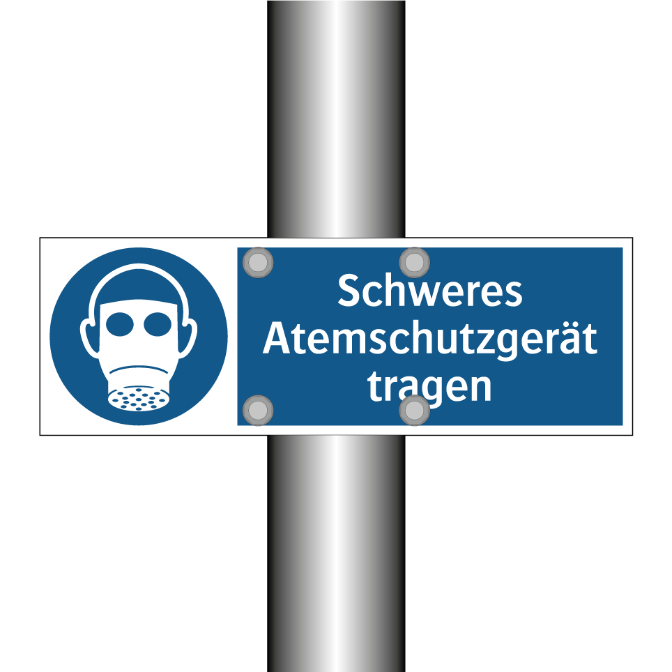 Gebotsschild mit dem Text Schweres Atemschutzgerät tragen