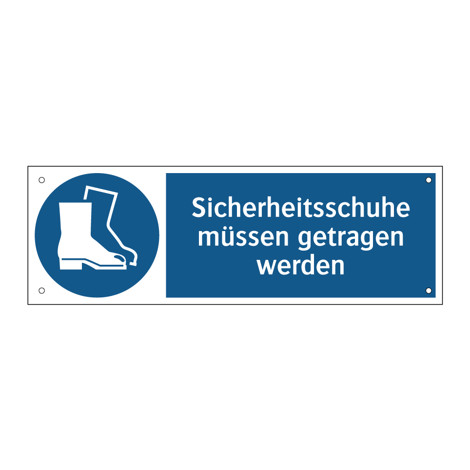 Gebotsschild mit dem Text Sicherheitsschuhe müssen getragen werden