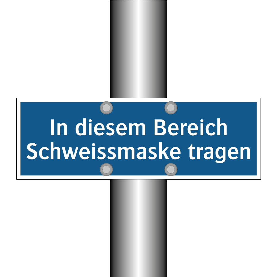 Gebotsschild mit dem Text In diesem Bereich Schweissmaske tragen