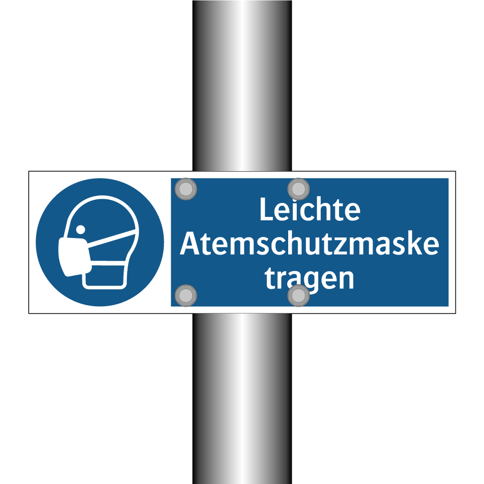 Gebotsschild mit dem Text Leichte Atemschutzmaske tragen