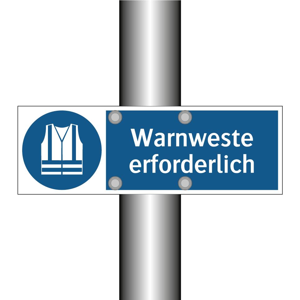 Diese Gebotsschild mit blauem Hintergrund und weißer Schrift ist ein unverzichtbares Element für die Sicherheit am Arbeitsplatz. Sie signalisiert klar und deutlich, dass das Tragen einer Warnweste erforderlich ist, um Unfälle zu vermeiden und die Sichtbarkeit zu erhöhen. Ideal für Baustellen, Lagerhallen oder industrielle Umgebungen, wo Sicherheitsvorschriften strikt eingehalten werden müssen. Diese Sicherheitskennzeichnung kann an Eingängen, in Umkleideräumen oder an anderen strategischen Punkten angebracht werden, um sicherzustellen, dass alle Mitarbeiter und Besucher die Sicherheitsmaßnahmen befolgen. Die klare Symbolik und die prägnante Botschaft machen sie zu einem effektiven Mittel, um die Aufmerksamkeit zu erregen und die Einhaltung der Sicherheitsvorschriften zu gewährleisten.