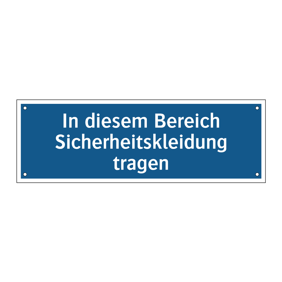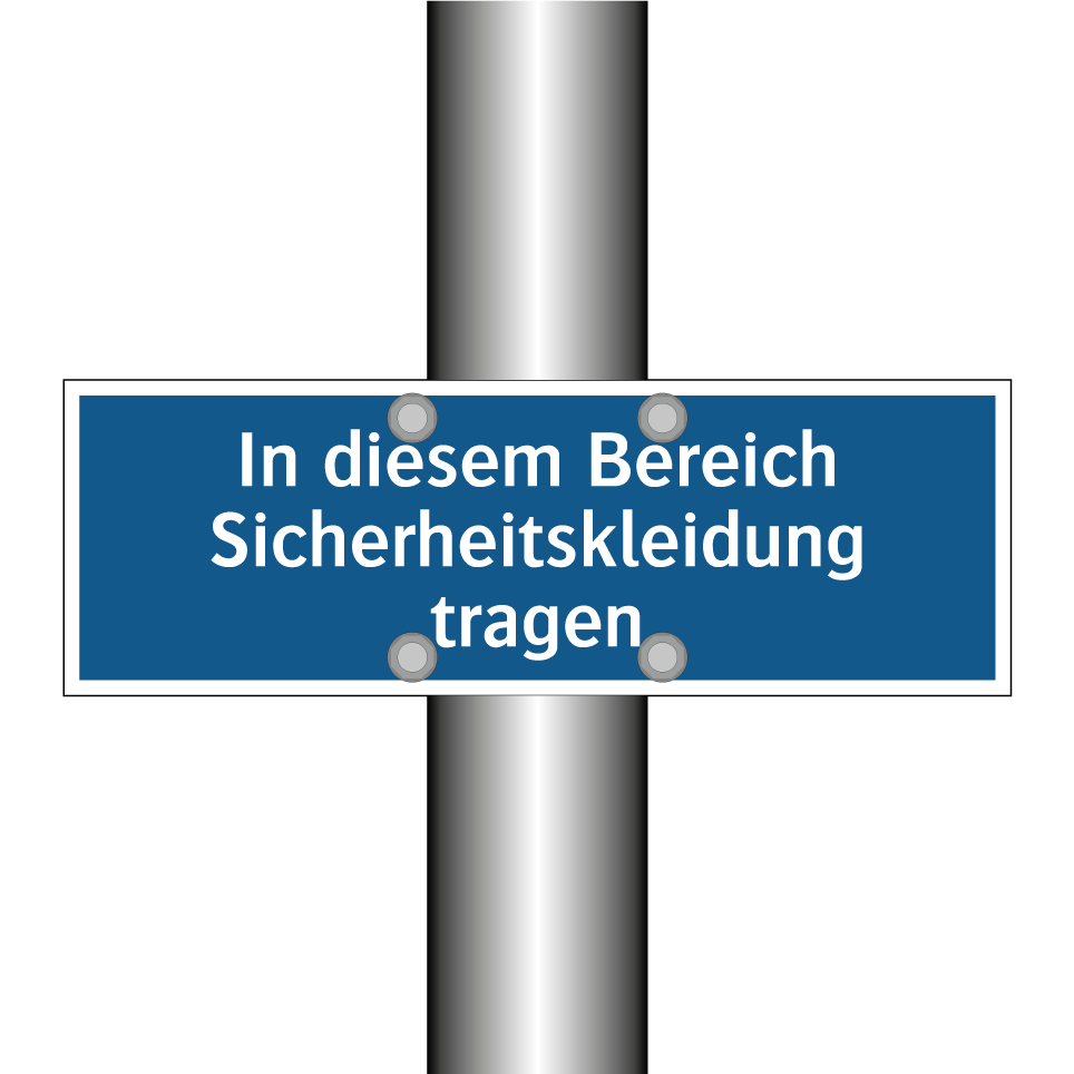 Gebotsschild mit dem Text In diesem Bereich Sicherheitskleidung tragen