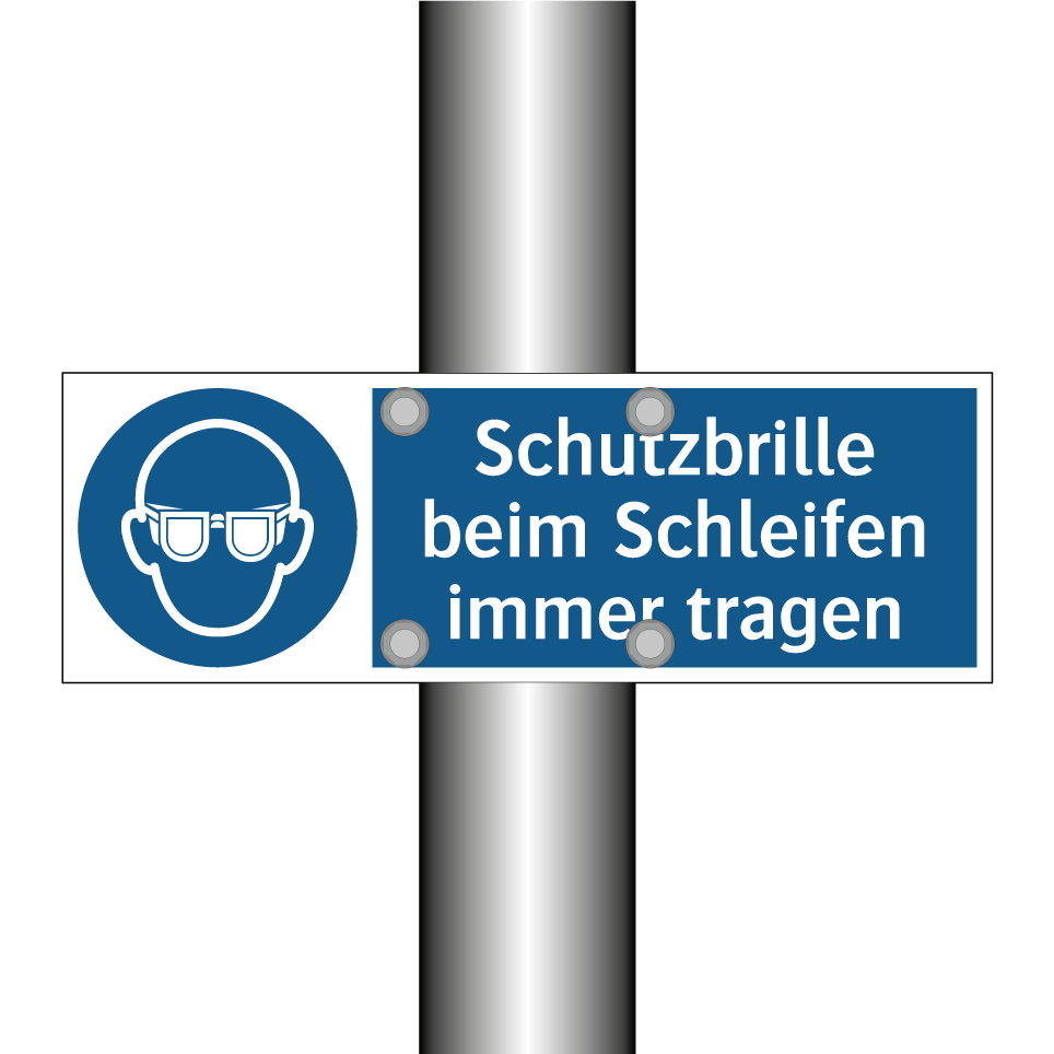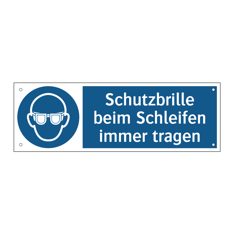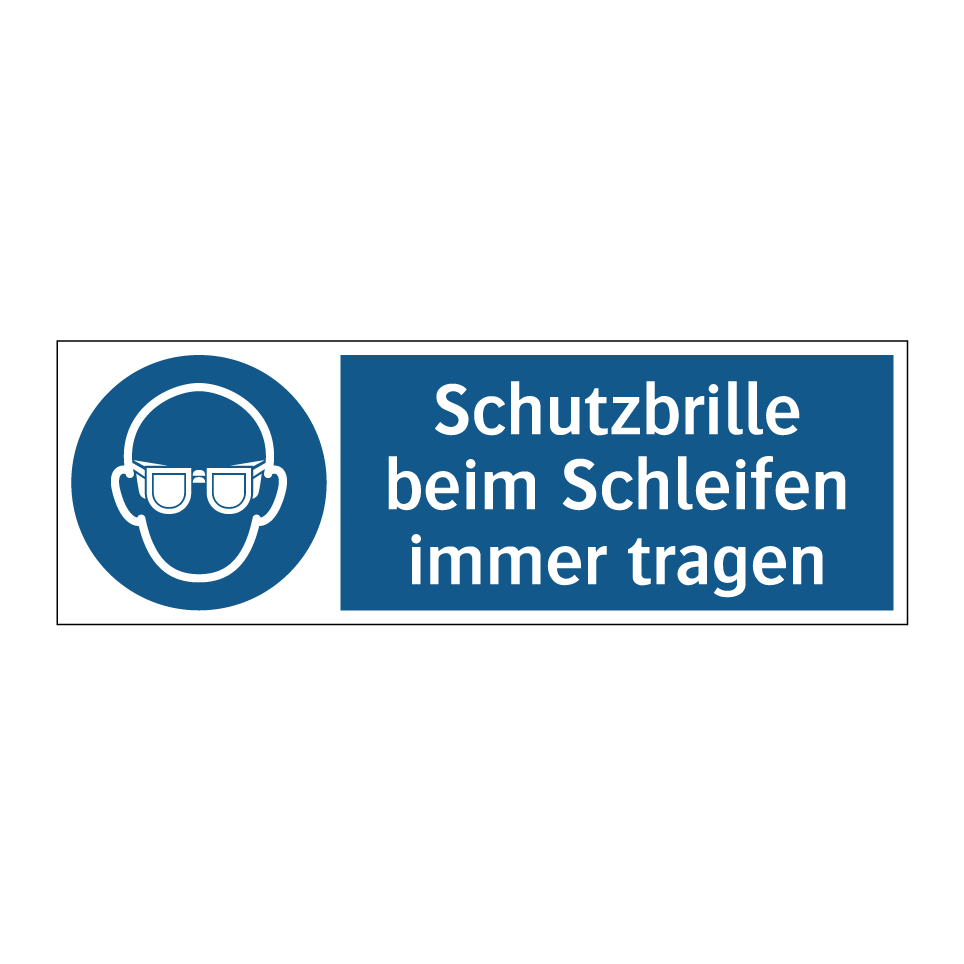 Gebotsschild mit dem Text Schutzbrille beim Schleifen immer tragen