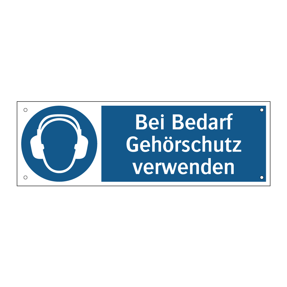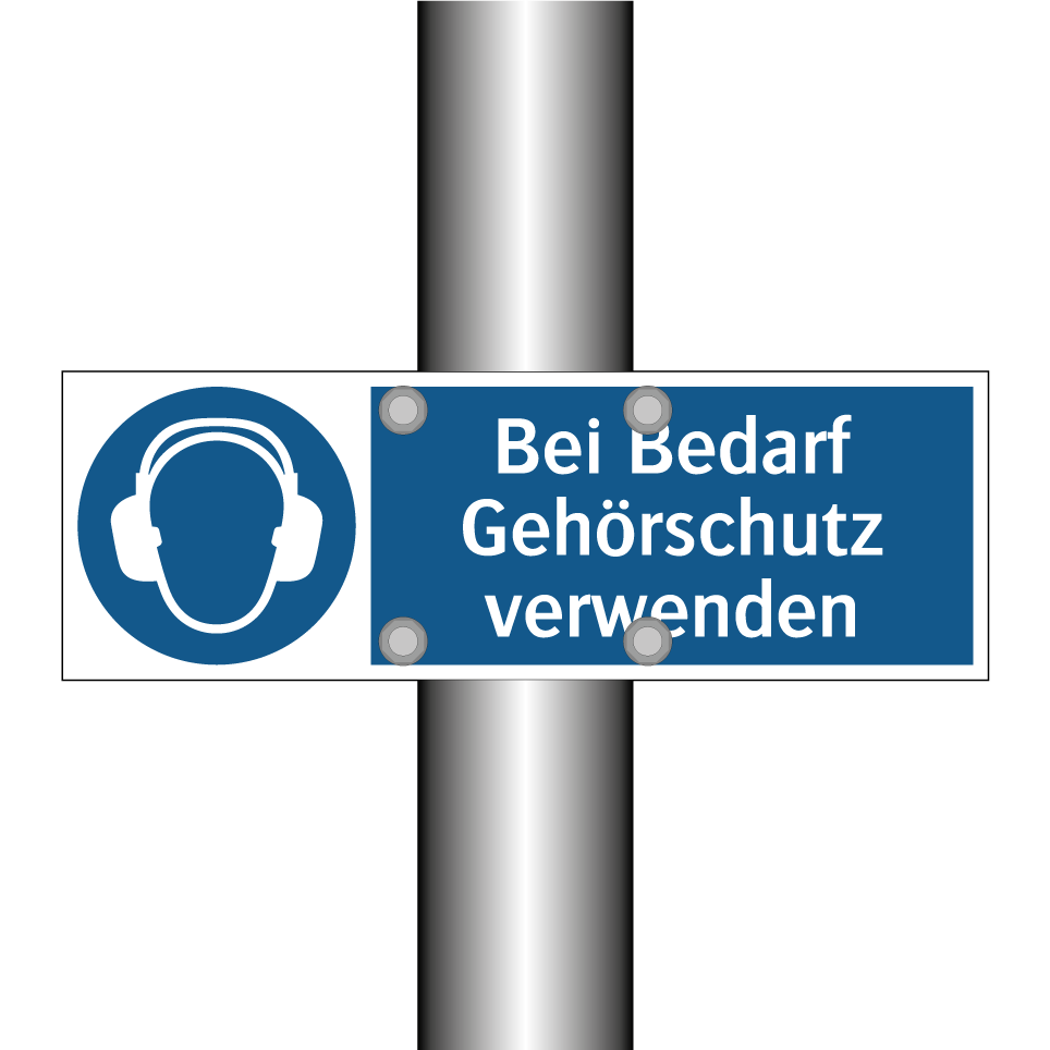 Gebotsschild mit dem Text Bei Bedarf Gehörschutz verwenden
