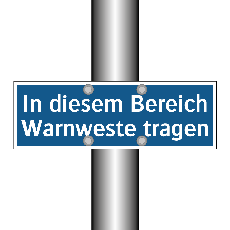 Gebotsschild mit dem Text In diesem Bereich Warnweste tragen