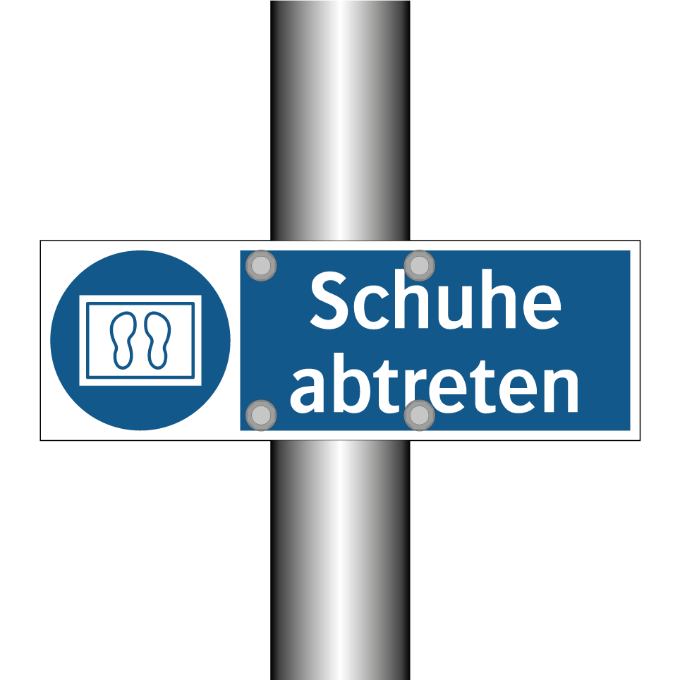 Diese Gebotsschild mit blauem Hintergrund und weißer Schrift ist ideal für den Einsatz in Bereichen, in denen Sauberkeit und Ordnung von größter Bedeutung sind. Sie erinnert Besucher und Mitarbeiter daran, ihre Schuhe gründlich zu reinigen, bevor sie einen bestimmten Bereich betreten. Diese Anweisung ist besonders nützlich in Eingangsbereichen von Büros, Werkstätten oder öffentlichen Gebäuden, wo Schmutz und Staub vermieden werden sollen. Die klare Symbolik und der prägnante Text machen die Botschaft unmissverständlich und fördern ein sauberes und gepflegtes Umfeld. Platzieren Sie diese Gebotsschild an gut sichtbaren Stellen, um maximale Aufmerksamkeit und Einhaltung zu gewährleisten.