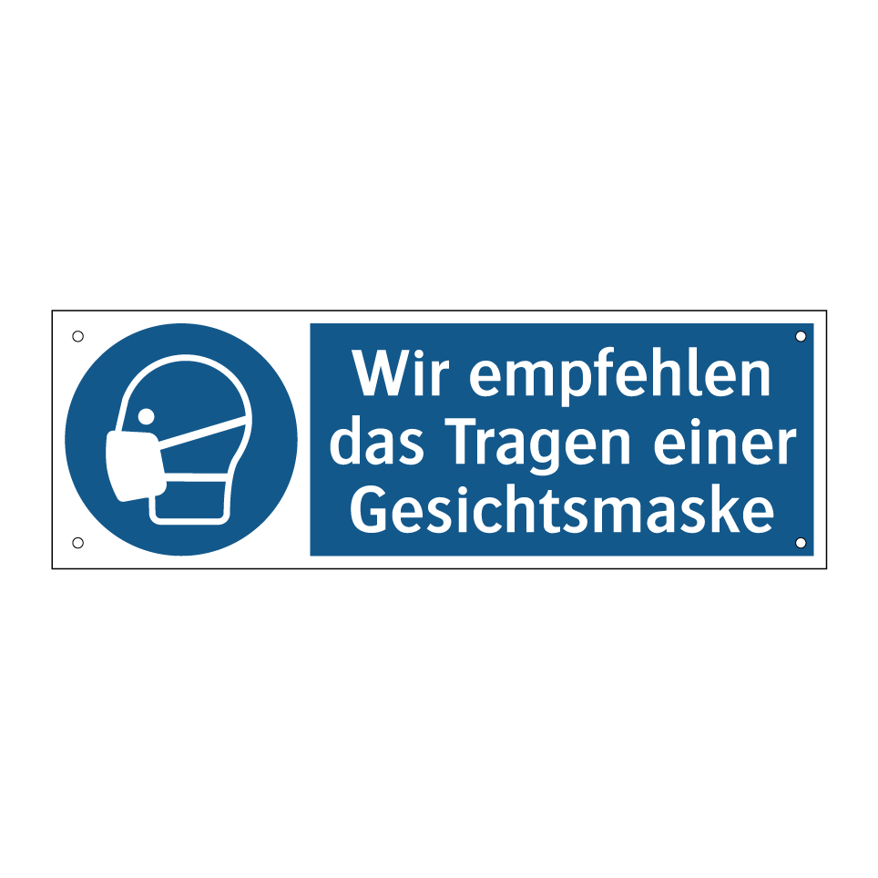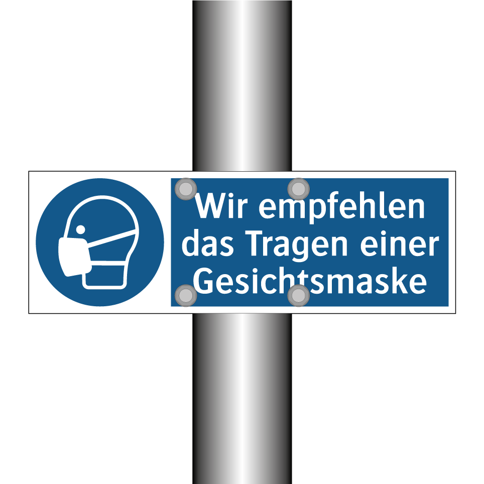 Gebotsschild mit dem Text Wir empfehlen das Tragen einer Gesichtsmaske
