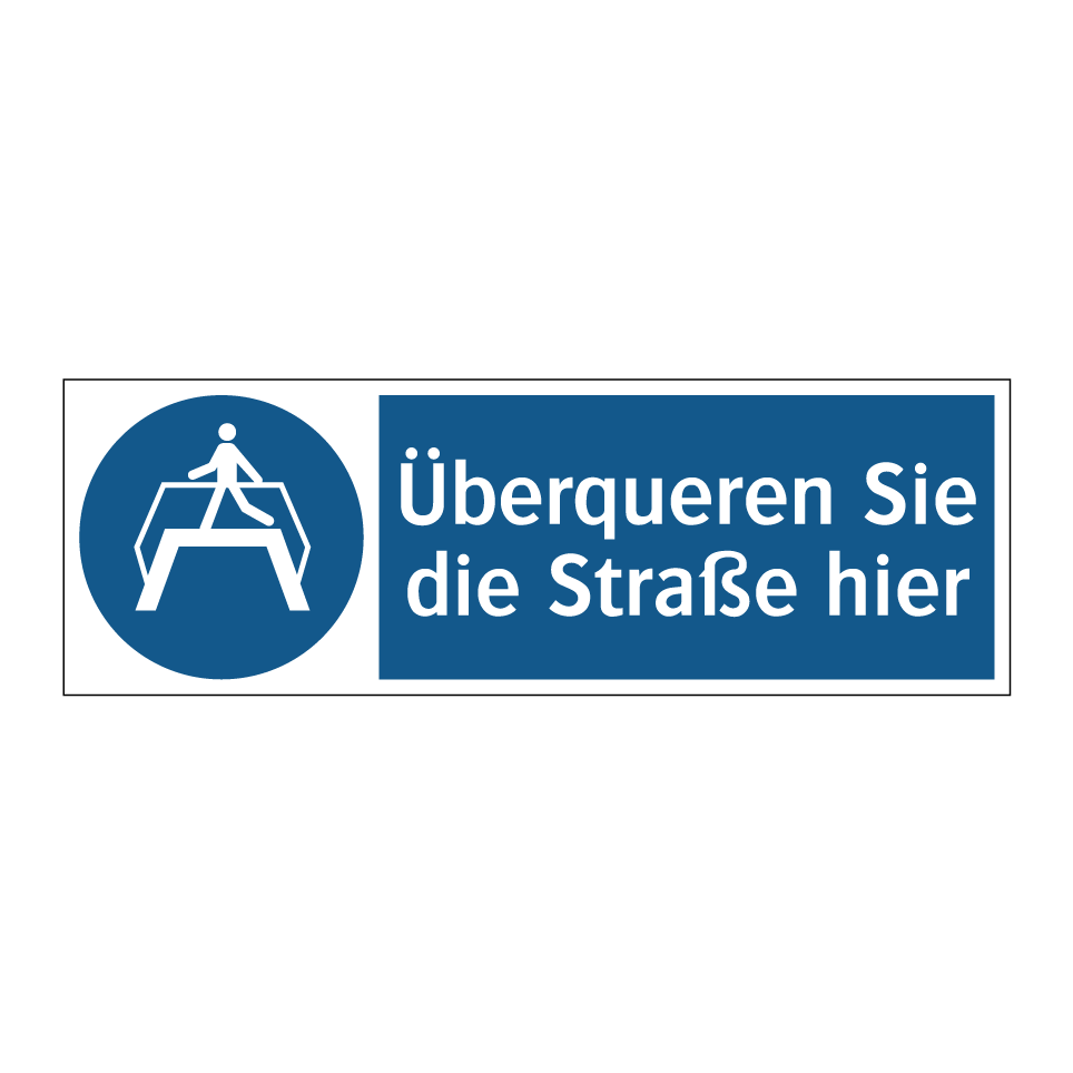 Gebotsschild mit dem Text Überqueren Sie die Straße hier