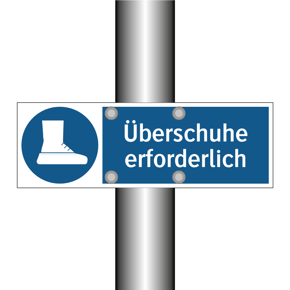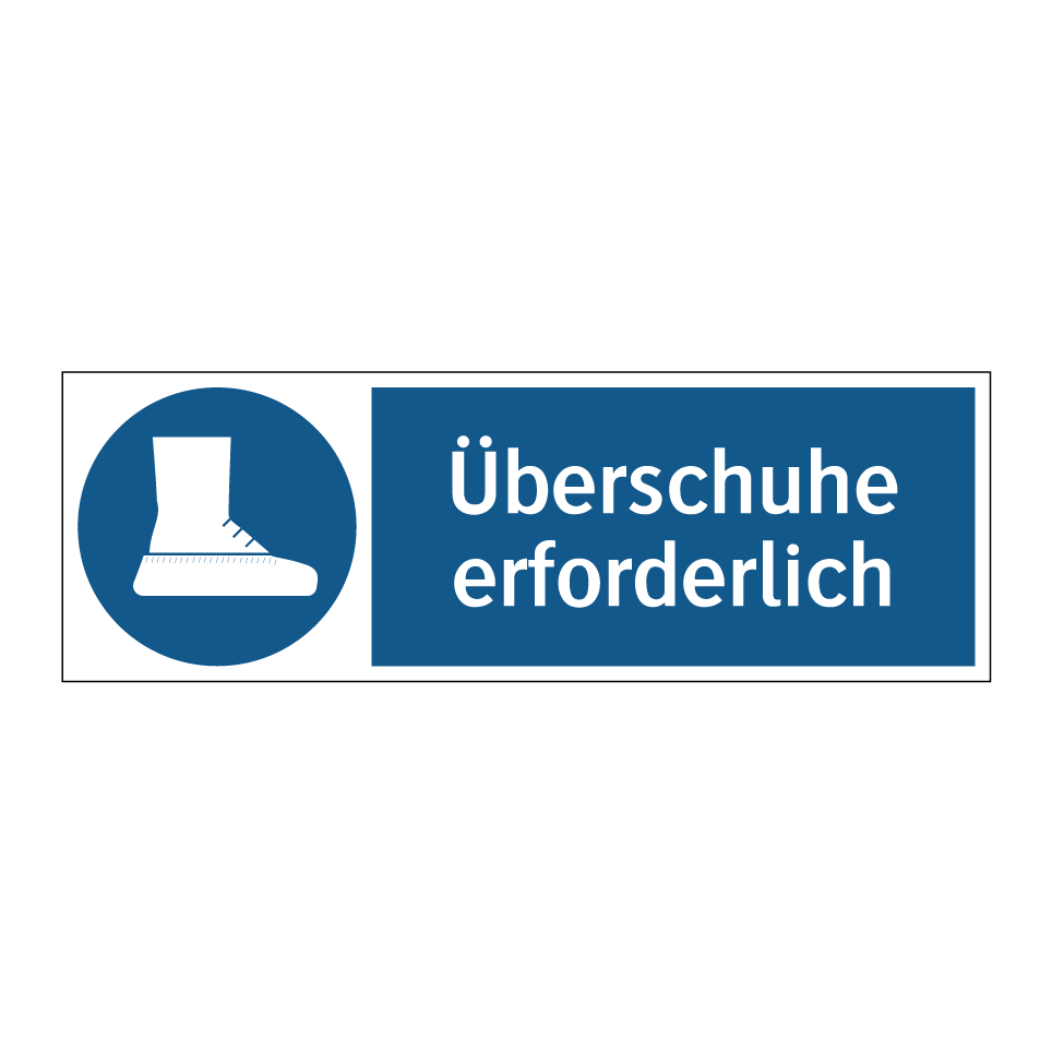 Gebotsschild mit dem Text Überschuhe erforderlich