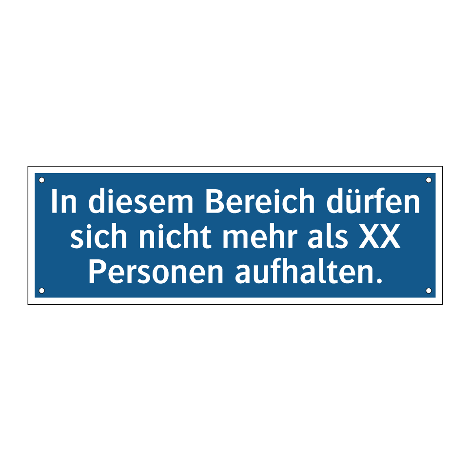 Diese Gebotsschild ist ideal für die Regulierung der Personenanzahl in bestimmten Bereichen. Sie eignet sich hervorragend für den Einsatz in öffentlichen Einrichtungen wie Bibliotheken, Museen oder Fitnessstudios, wo es wichtig ist, die Anzahl der anwesenden Personen zu kontrollieren. Auch in Büros oder Konferenzräumen kann diese Beschilderung zur Einhaltung von Sicherheits- und Gesundheitsvorschriften beitragen. Die klare blaue Hintergrundfarbe mit weißer Schrift sorgt dafür, dass die Anweisung leicht erkennbar und verständlich ist. Platzieren Sie diese Gebotsschild an gut sichtbaren Stellen, um sicherzustellen, dass alle Besucher und Mitarbeiter die Richtlinien befolgen.
