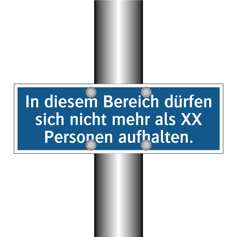 Gebotsschild mit dem Text In diesem Bereich dürfen sich nicht mehr als XX Personen aufhalten.