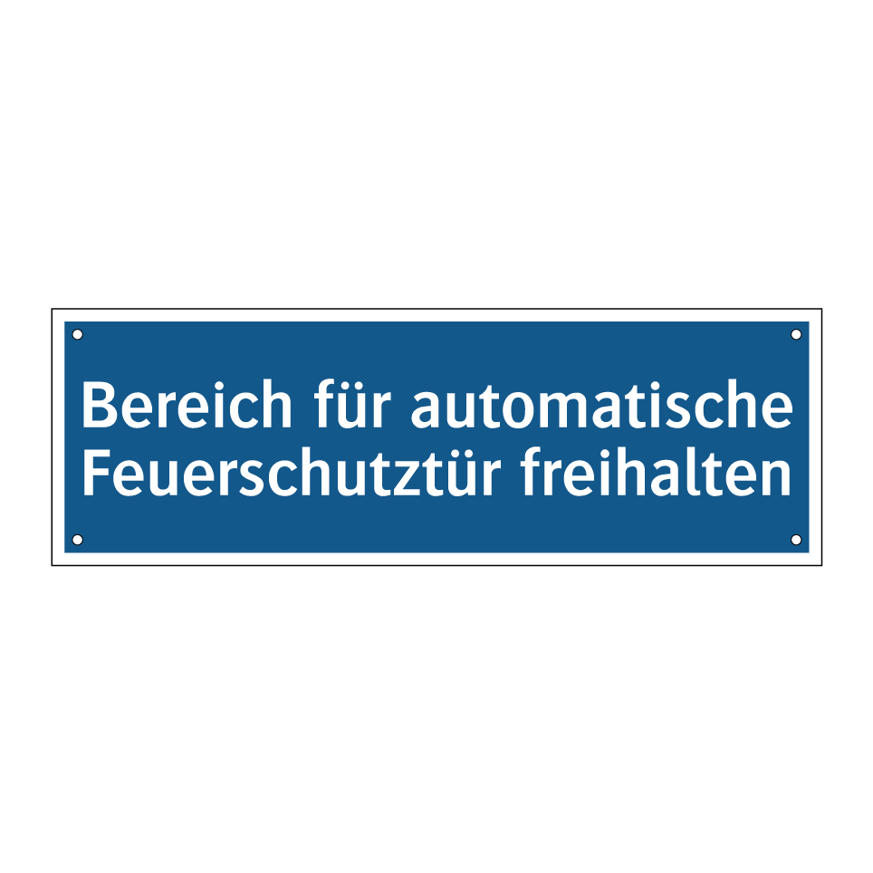 Gebotsschild mit dem Text Bereich für automatische Feuerschutztür freihalten