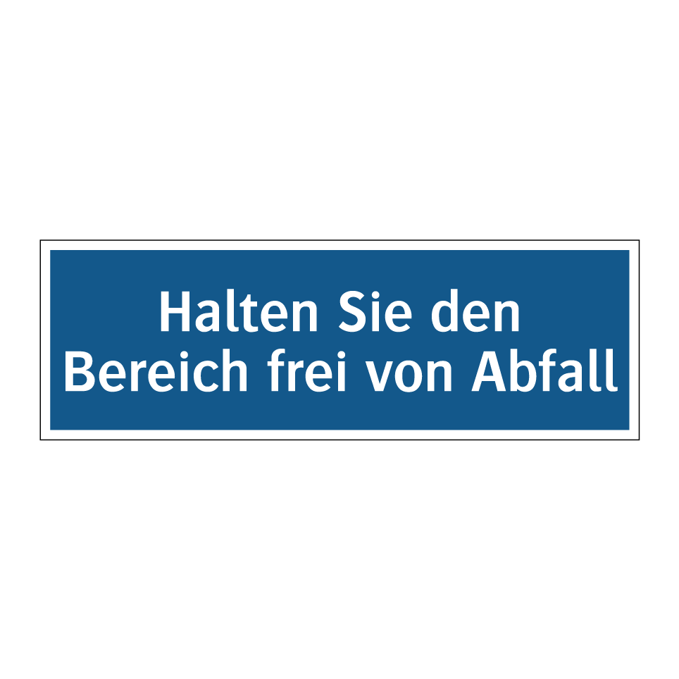 Gebotsschild mit dem Text Halten Sie den Bereich frei von Abfall