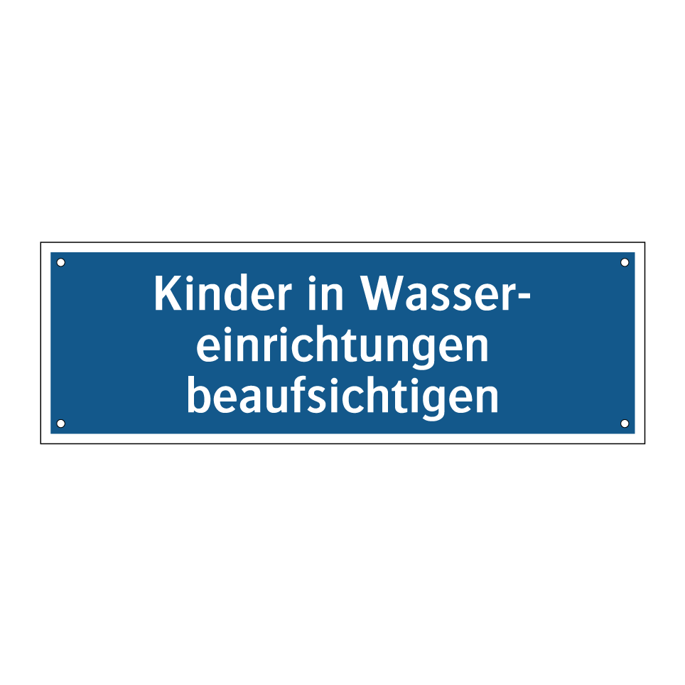 Diese Gebotsschild ist ideal für den Einsatz in Bereichen, in denen Kinder in der Nähe von Wasseranlagen spielen oder sich aufhalten. Sie dient als wichtige Erinnerung für Eltern und Betreuer, stets ein wachsames Auge auf die Kleinen zu haben, um deren Sicherheit zu gewährleisten. Die auffällige blaue Hintergrundfarbe mit weißer Schrift sorgt dafür, dass die Botschaft klar und deutlich wahrgenommen wird. Diese Beschilderung kann an Schwimmbädern, Wasserparks, öffentlichen Brunnen oder anderen Orten mit Wasserinstallationen angebracht werden. Sie trägt dazu bei, Unfälle zu vermeiden und eine sichere Umgebung für Kinder zu schaffen.