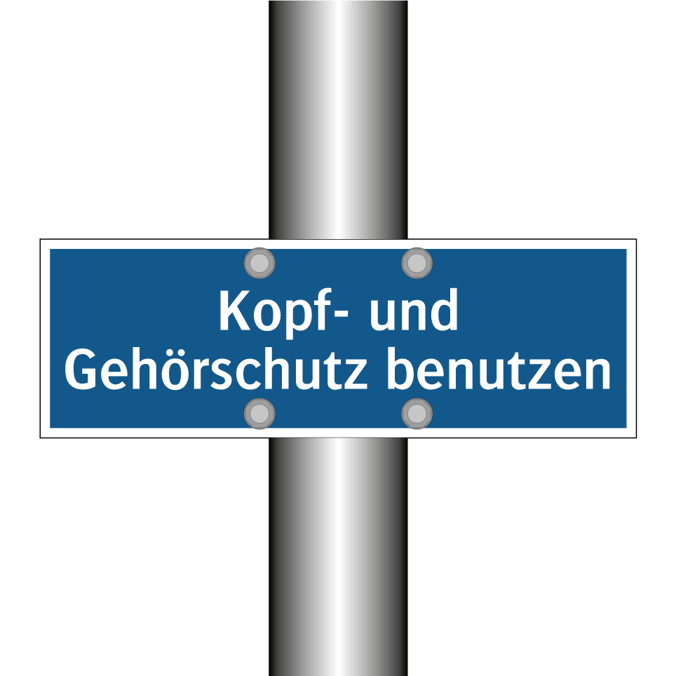 Gebotsschild mit dem Text Kopf- und Gehörschutz benutzen