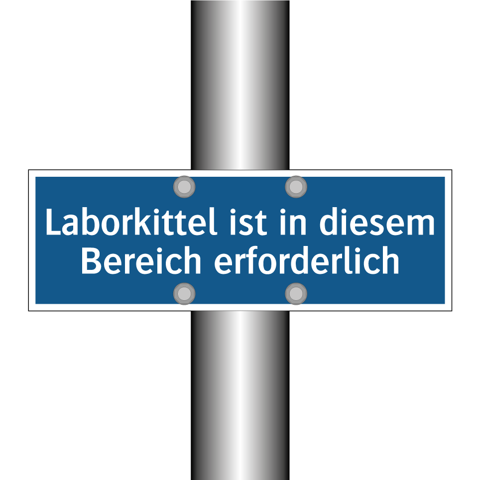 Gebotsschild mit dem Text Laborkittel ist in diesem Bereich erforderlich