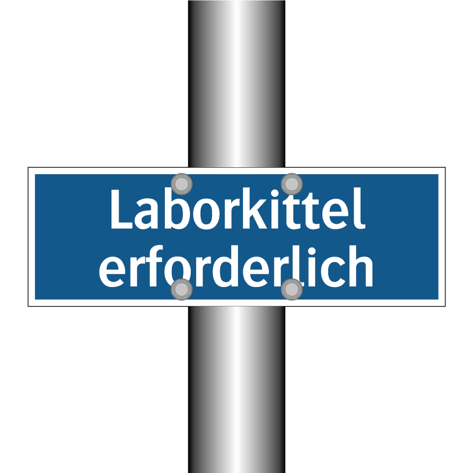 Gebotsschild mit dem Text Laborkittel erforderlich