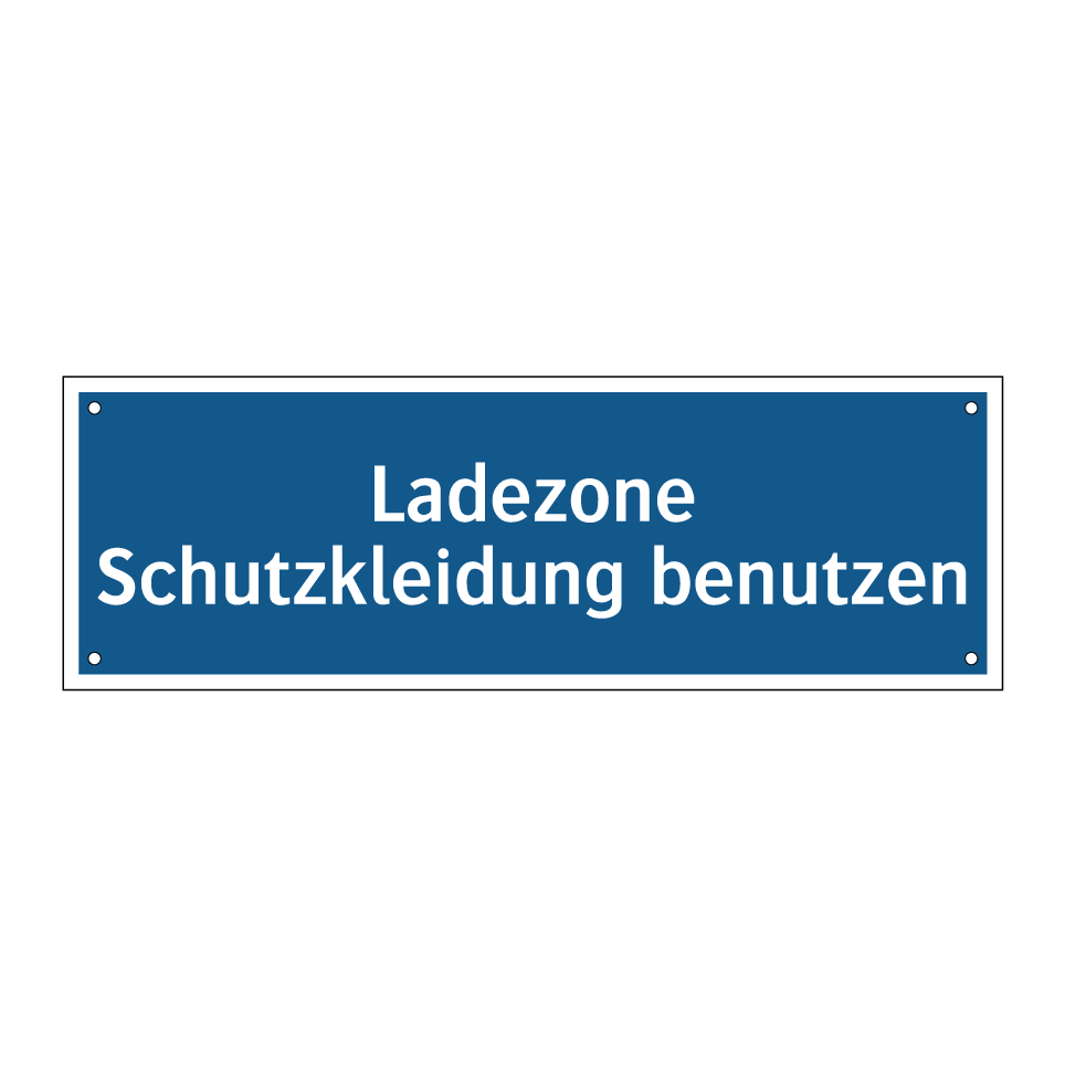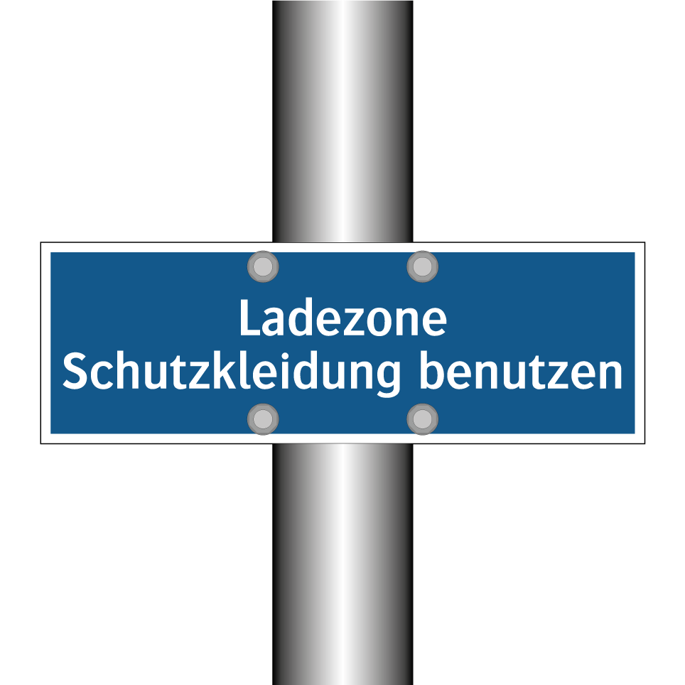 Gebotsschild mit dem Text Ladezone Schutzkleidung benutzen