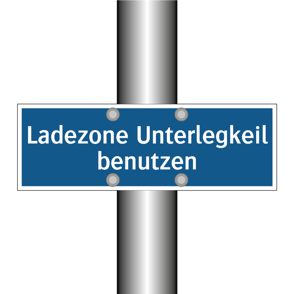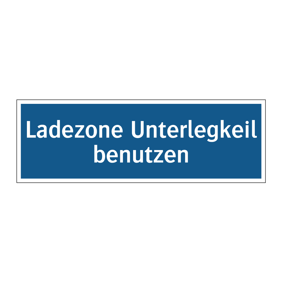 Gebotsschild mit dem Text Ladezone Unterlegkeil benutzen
