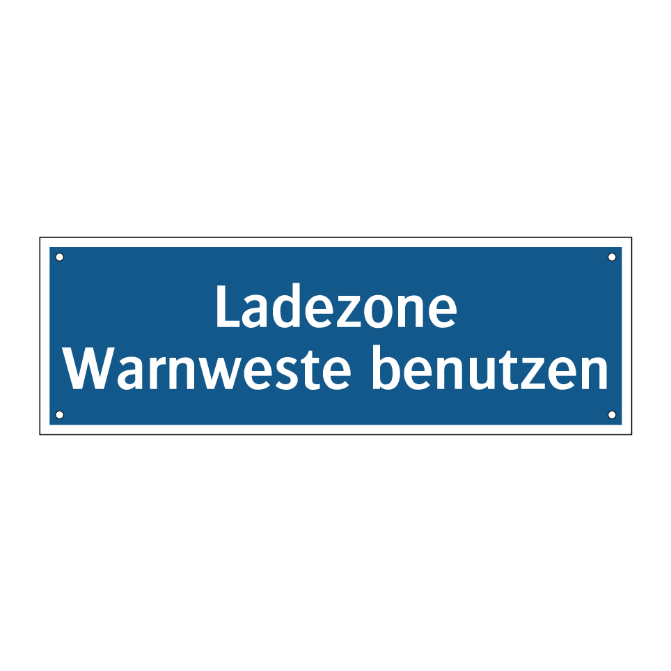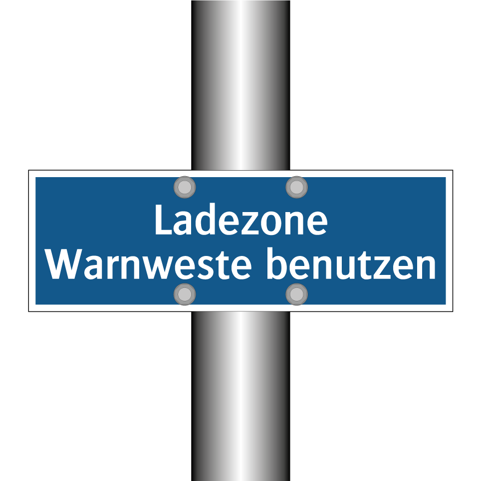 Gebotsschild mit dem Text Ladezone Warnweste benutzen