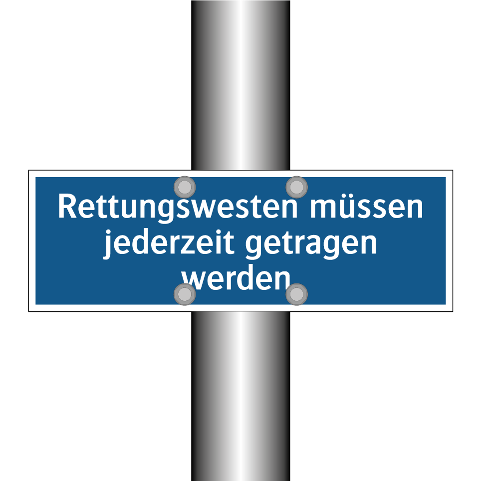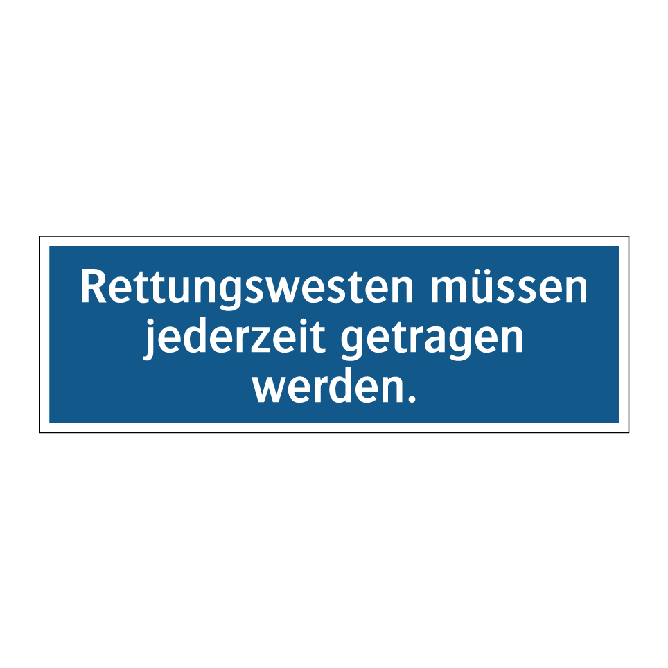 Gebotsschild mit dem Text Rettungswesten müssen jederzeit getragen werden.