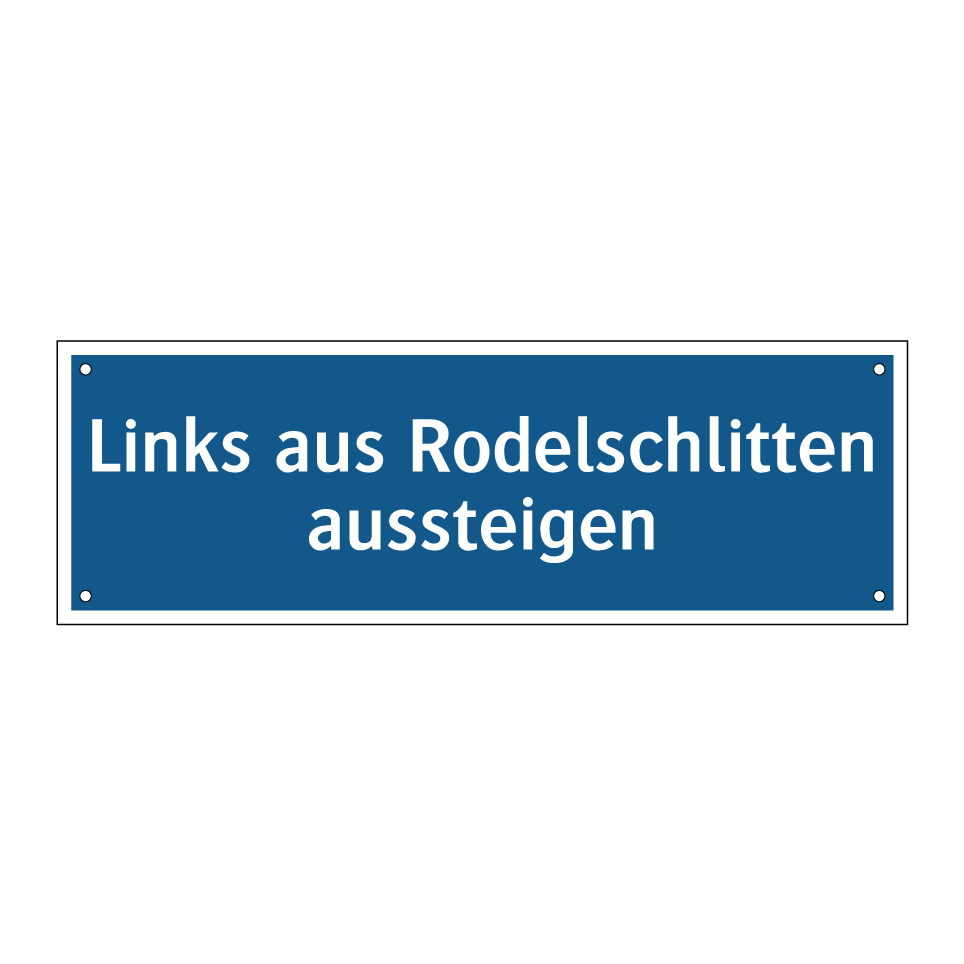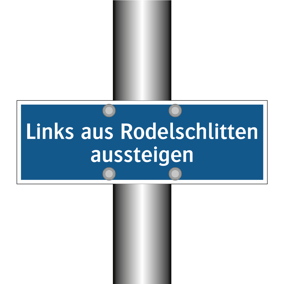 Gebotsschild mit dem Text Links aus Rodelschlitten aussteigen