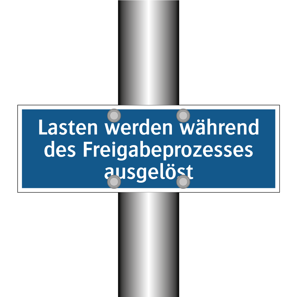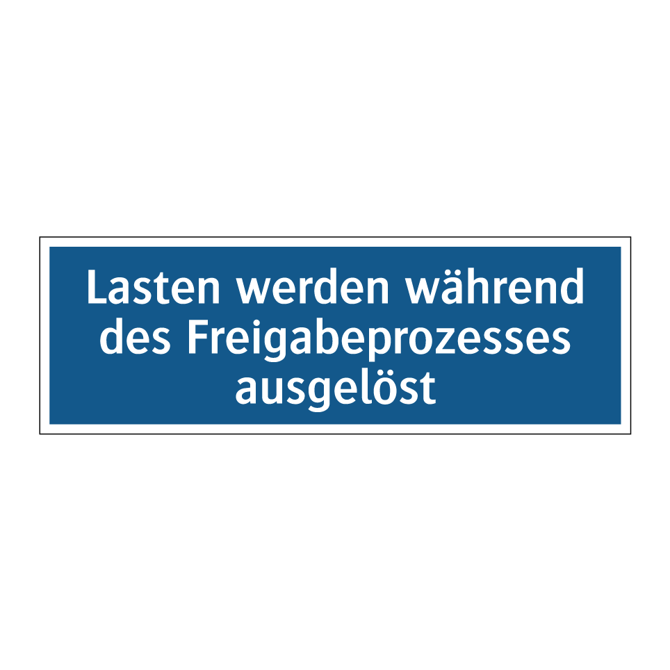 Gebotsschild mit dem Text Lasten werden während des Freigabeprozesses ausgelöst