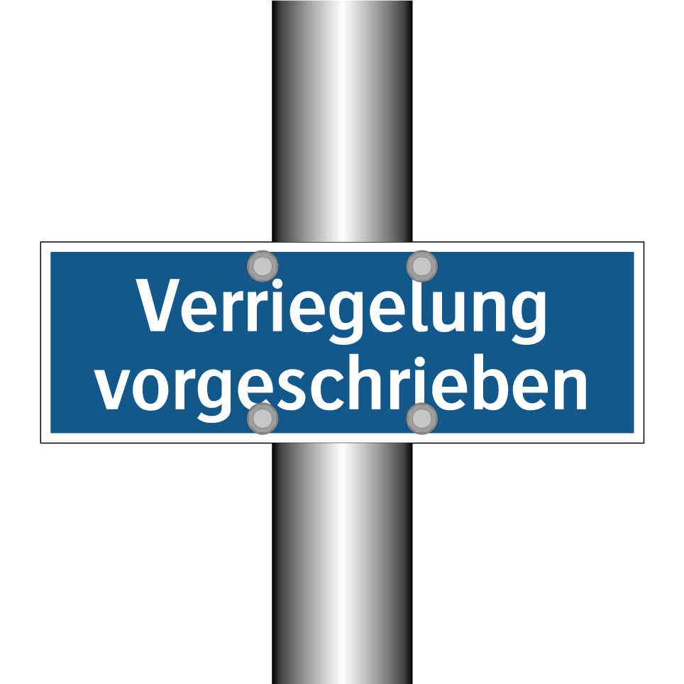 Gebotsschild mit dem Text Verriegelung vorgeschrieben