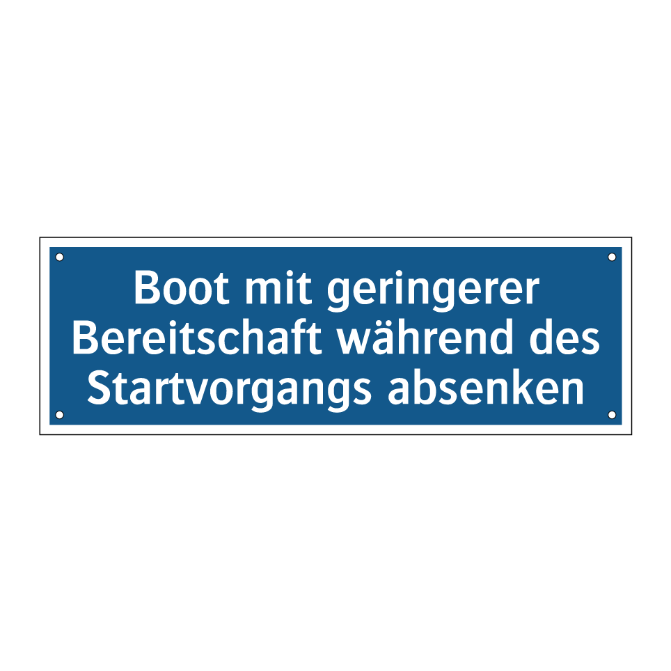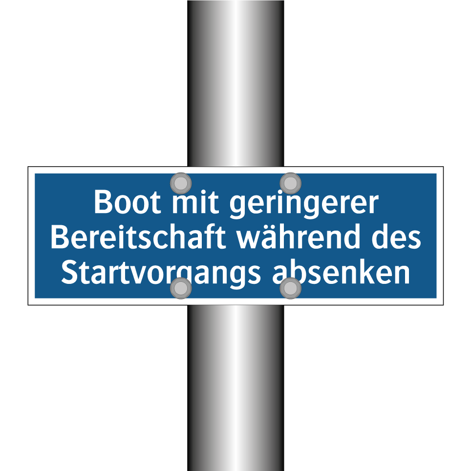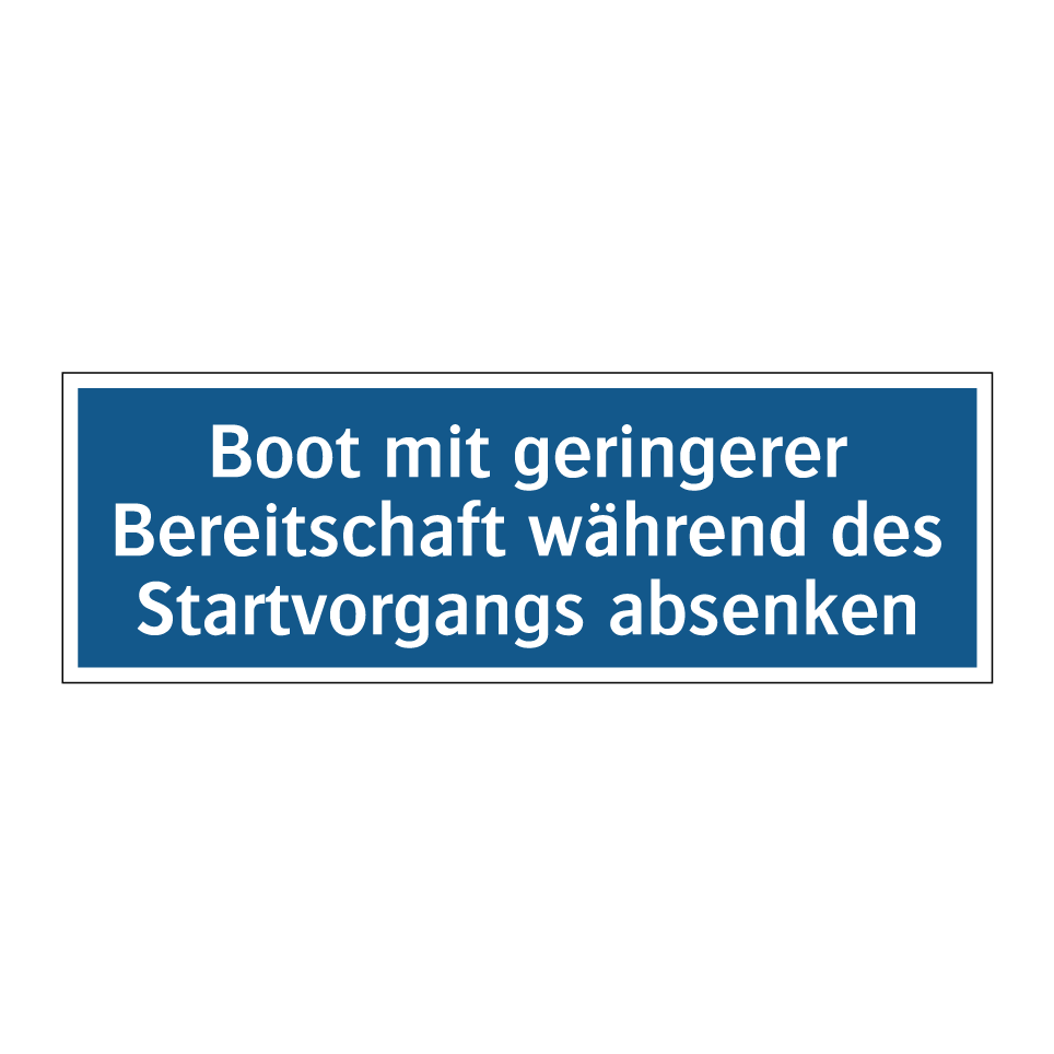Gebotsschild mit dem Text Boot mit geringerer Bereitschaft während des Startvorgangs absenken
