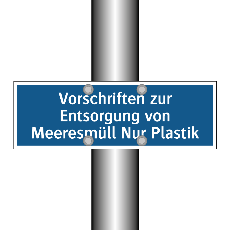 Gebotsschild mit dem Text Vorschriften zur Entsorgung von Meeresmüll Nur Plastik