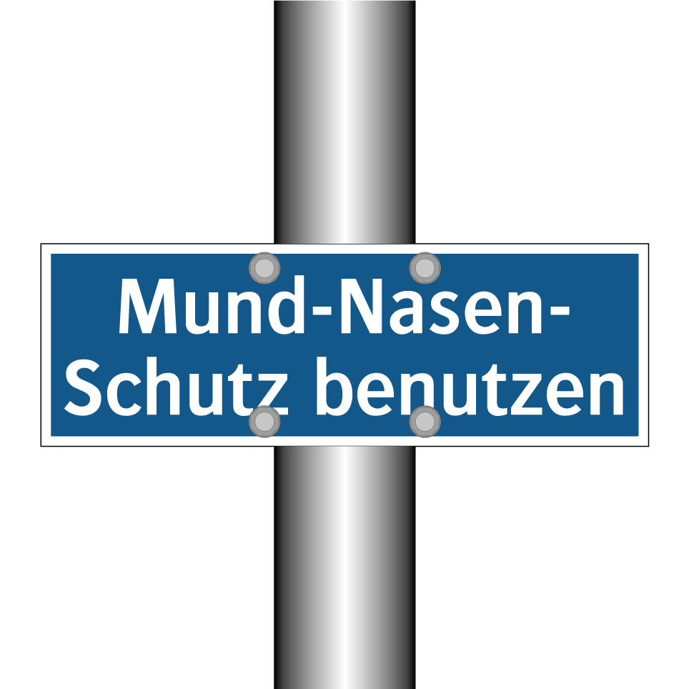 Gebotsschild mit dem Text Mund-Nasen- Schutz benutzen
