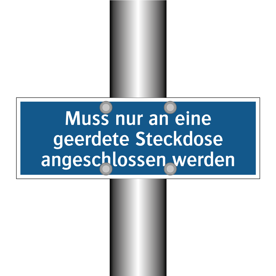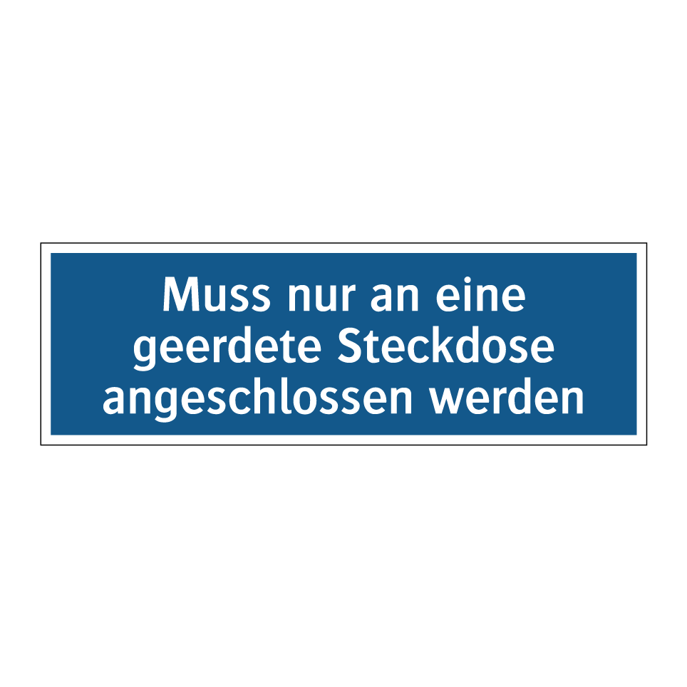 Gebotsschild mit dem Text Muss nur an eine geerdete Steckdose angeschlossen werden
