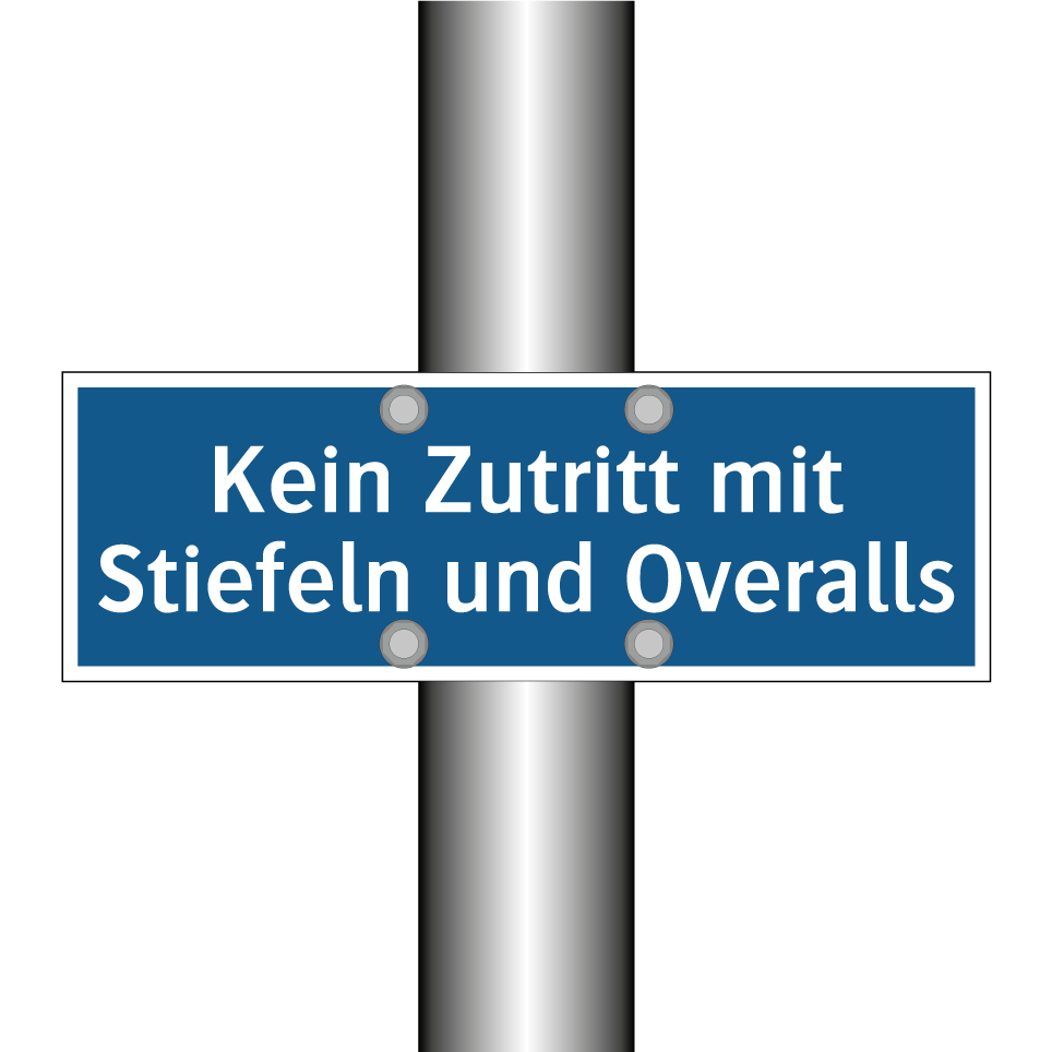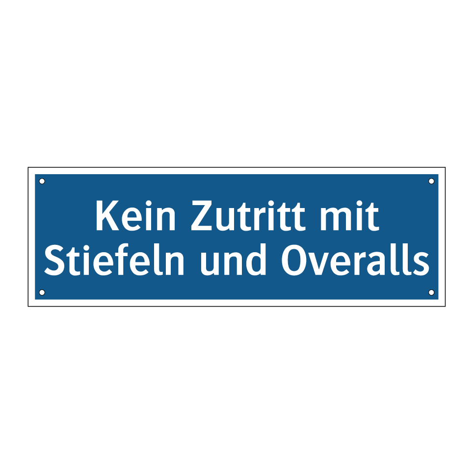 Gebotsschild mit dem Text Kein Zutritt mit Stiefeln und Overalls