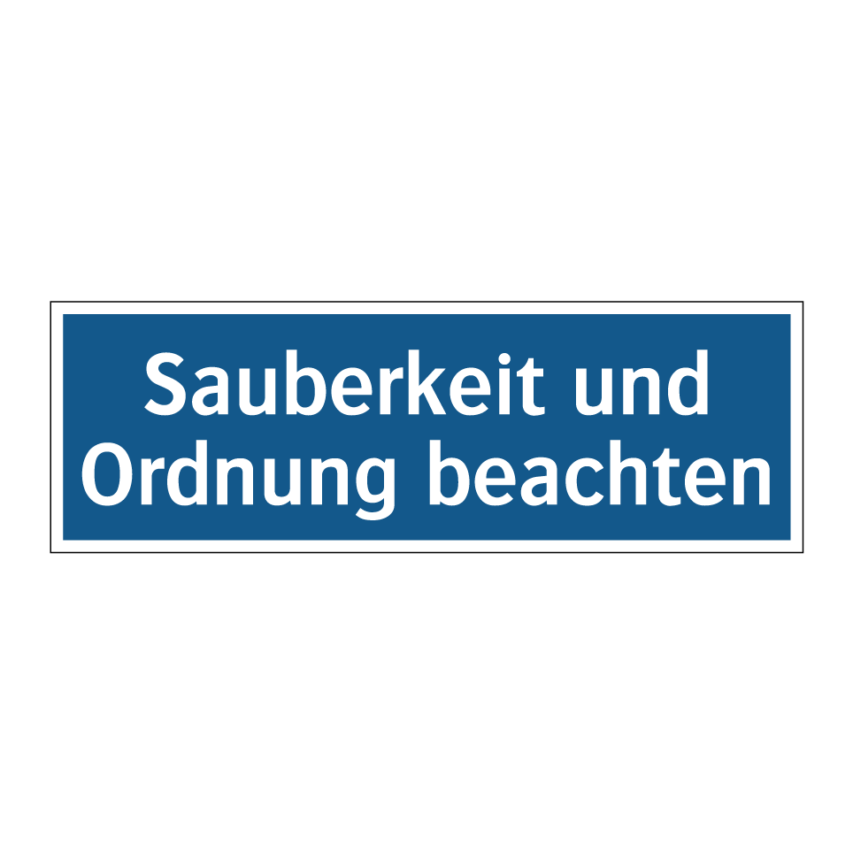 Gebotsschild mit dem Text Sauberkeit und Ordnung beachten