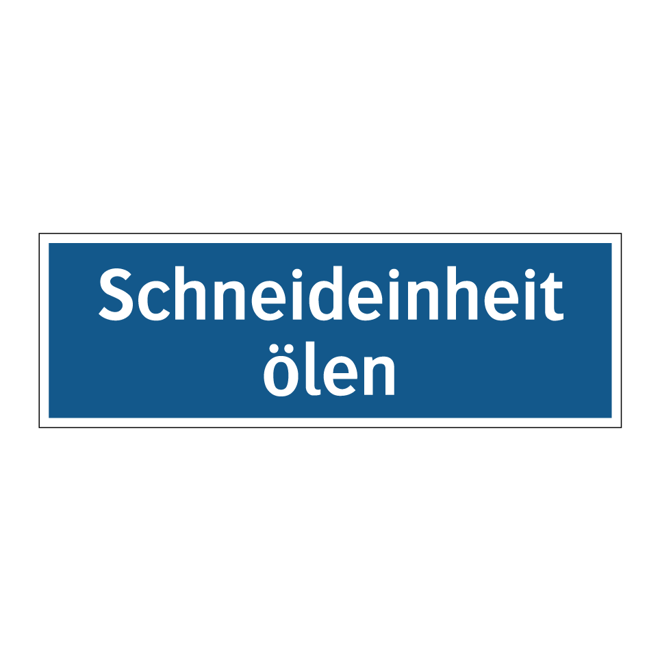 Gebotsschild mit dem Text Schneideinheit ölen
