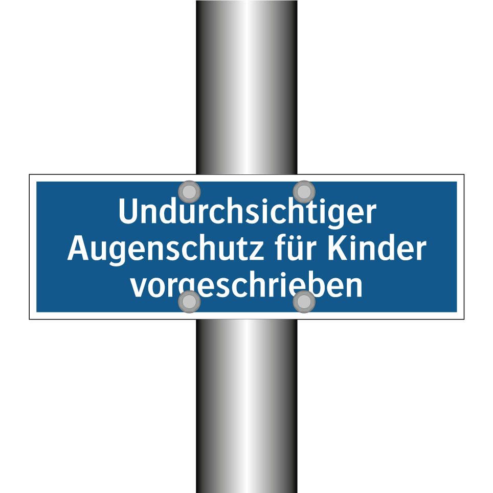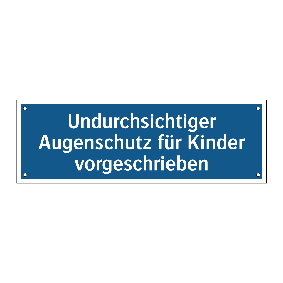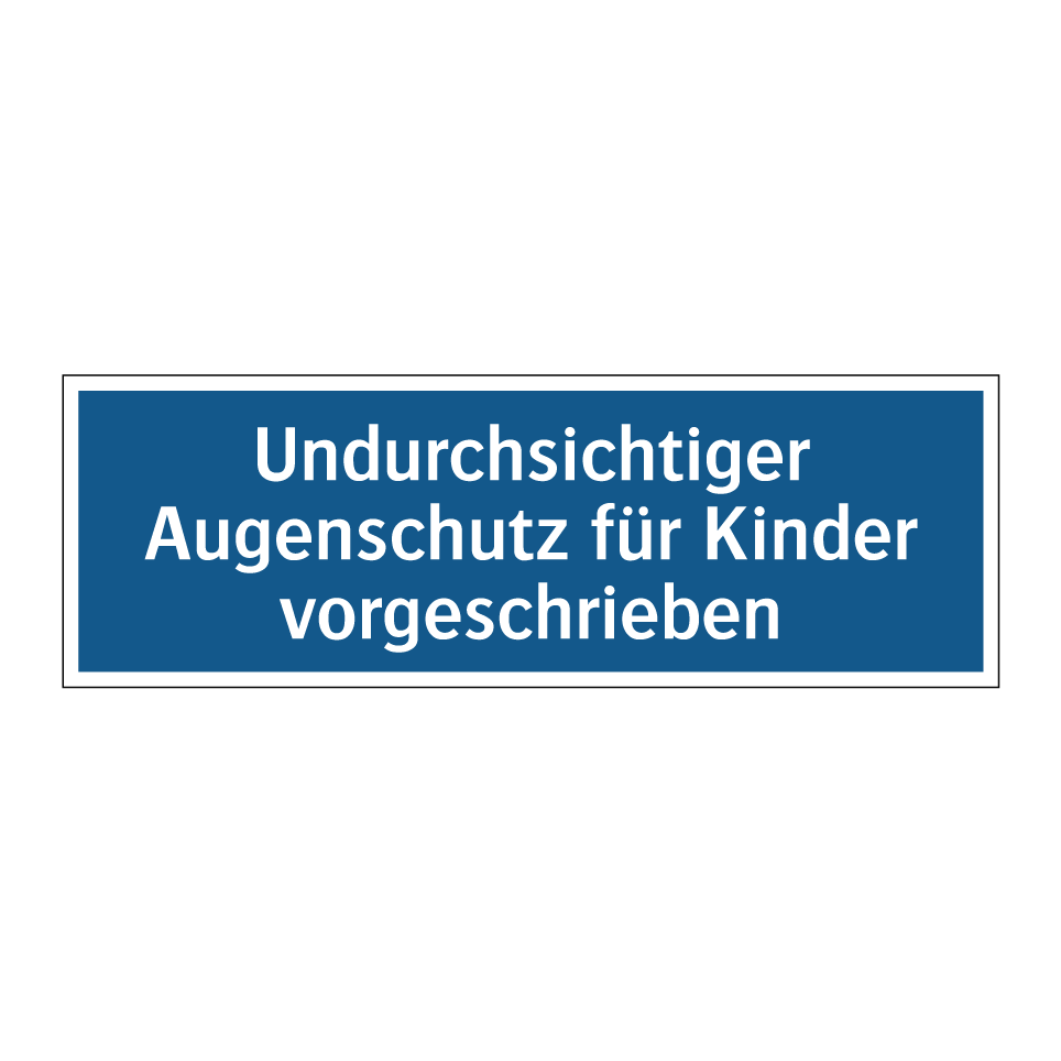 Gebotsschild mit dem Text Undurchsichtiger Augenschutz für Kinder vorgeschrieben