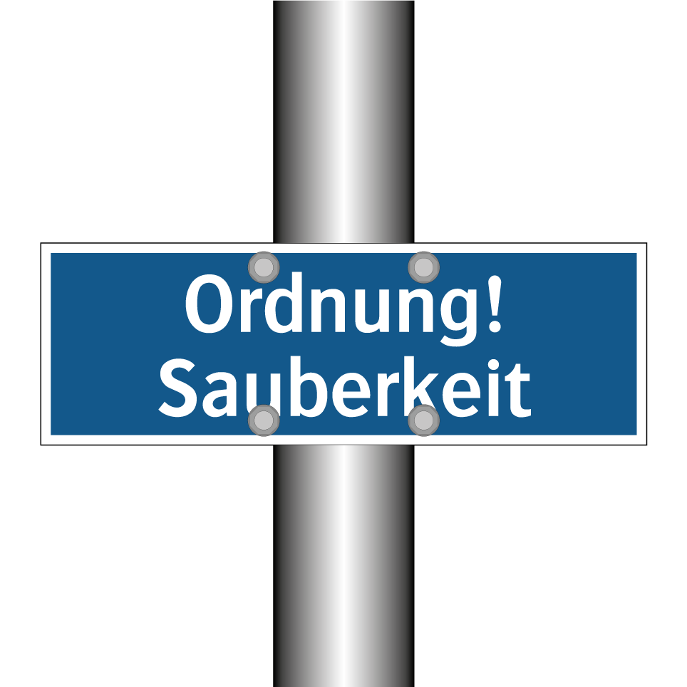 Gebotsschild mit dem Text Ordnung! Sauberkeit