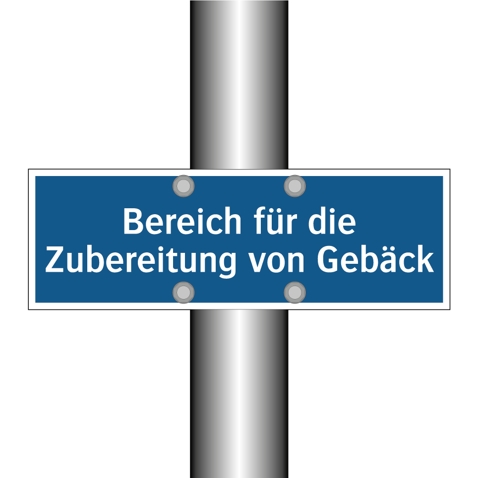 Gebotsschild mit dem Text Bereich für die Zubereitung von Gebäck