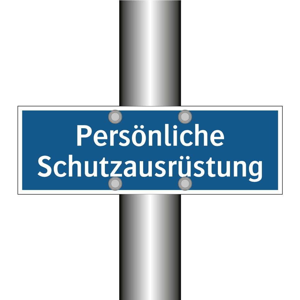 Gebotsschild mit dem Text Persönliche Schutzausrüstung