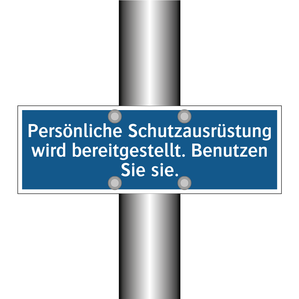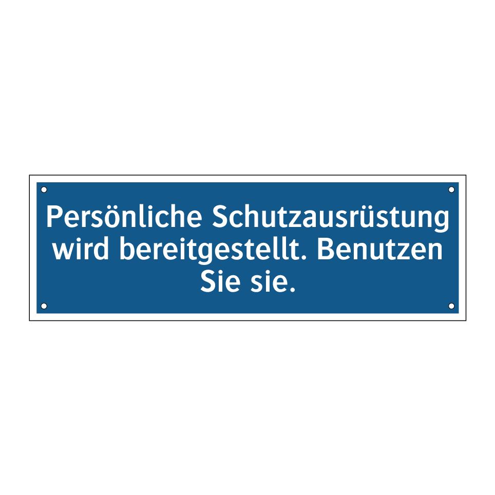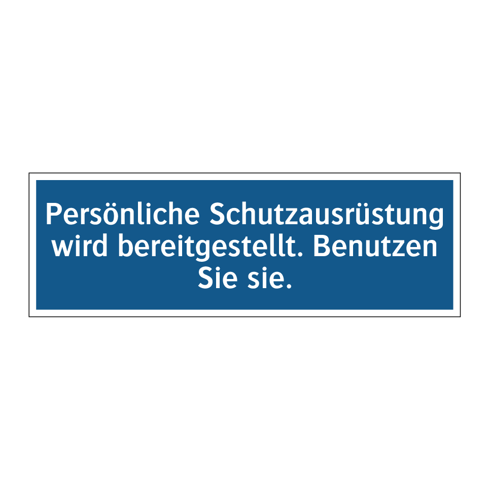 Gebotsschild mit dem Text Persönliche Schutzausrüstung wird bereitgestellt. Benutzen Sie sie.