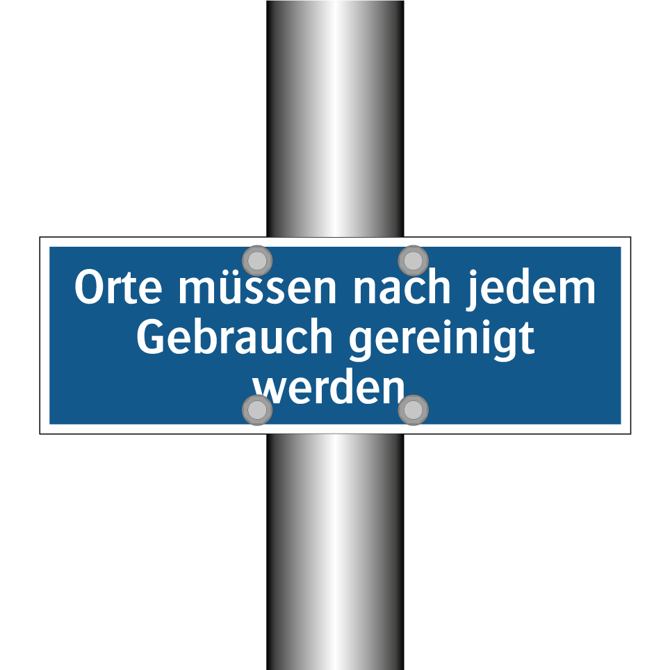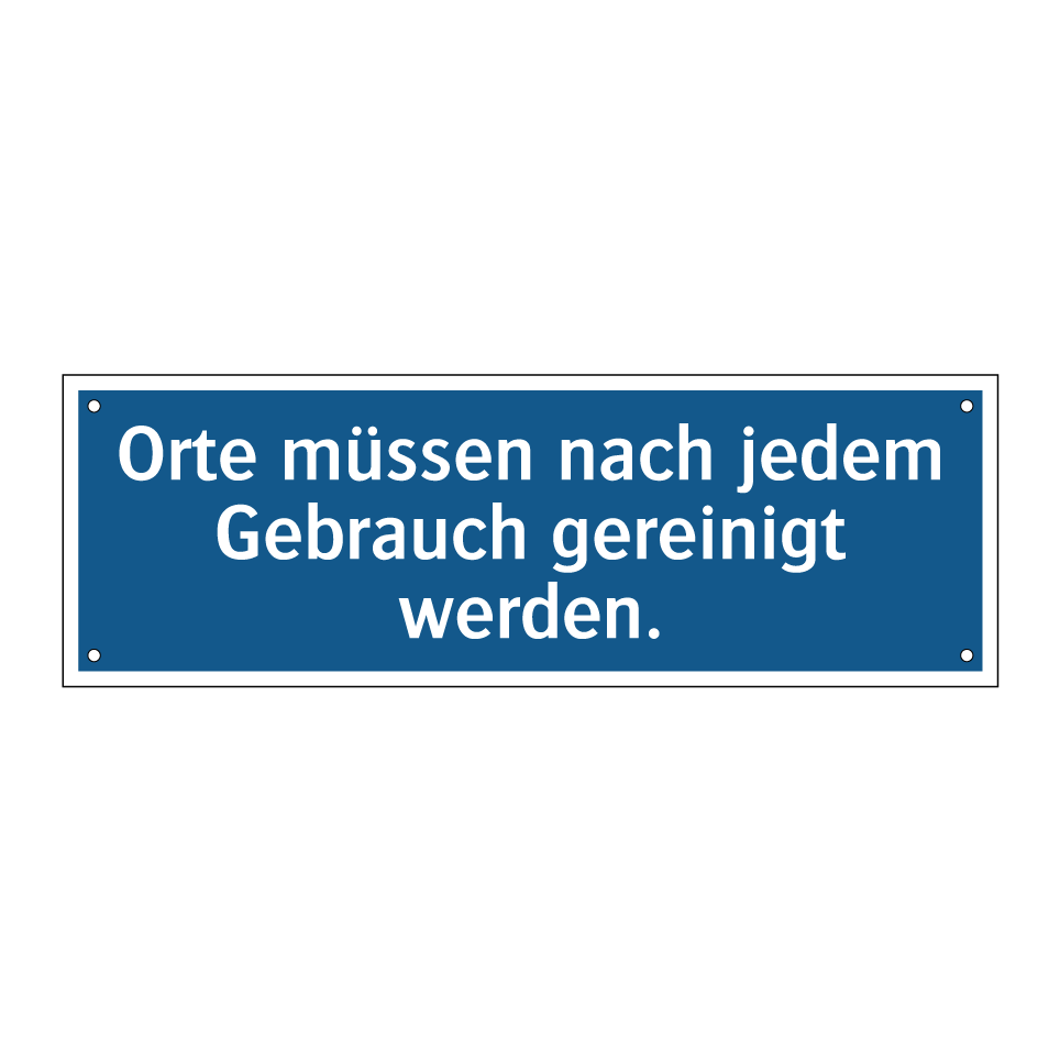 Gebotsschild mit dem Text Orte müssen nach jedem Gebrauch gereinigt werden.