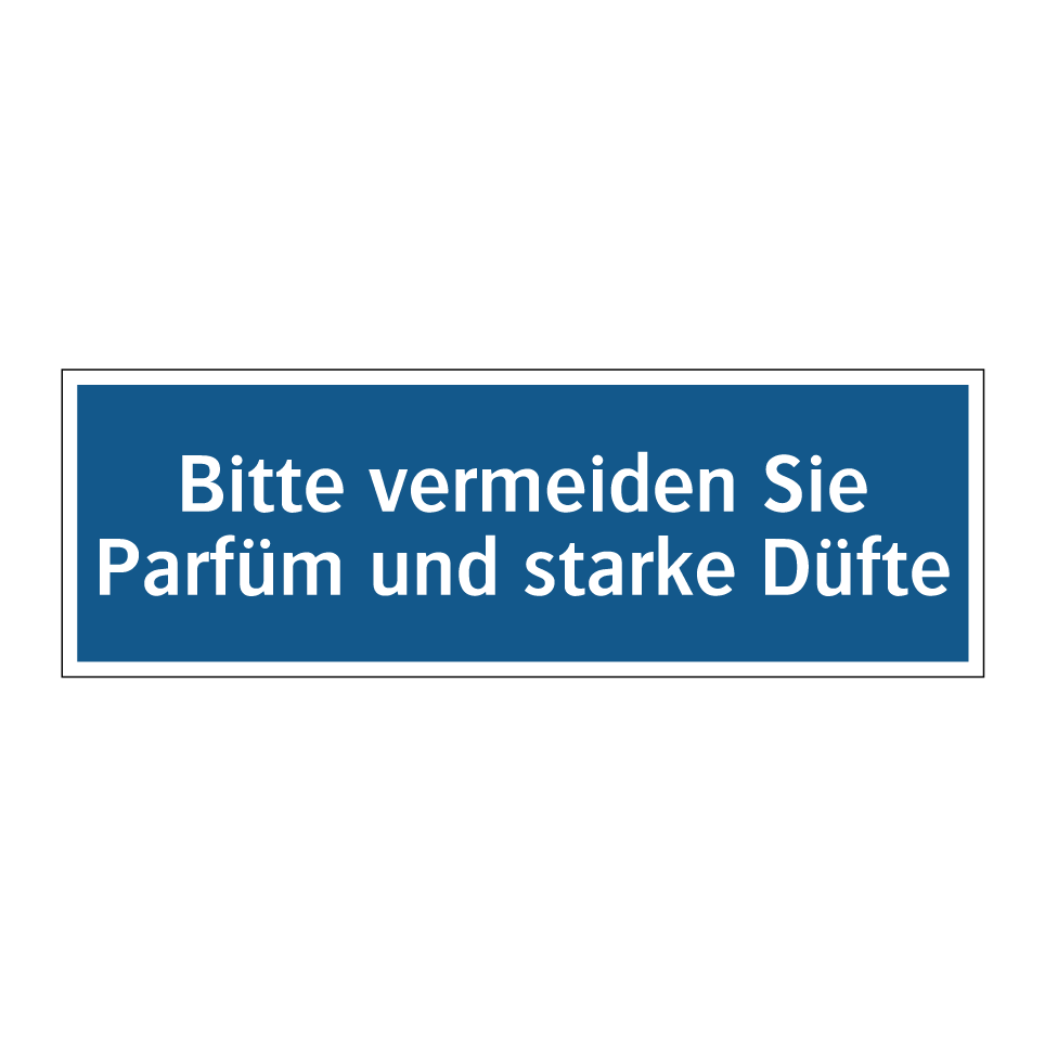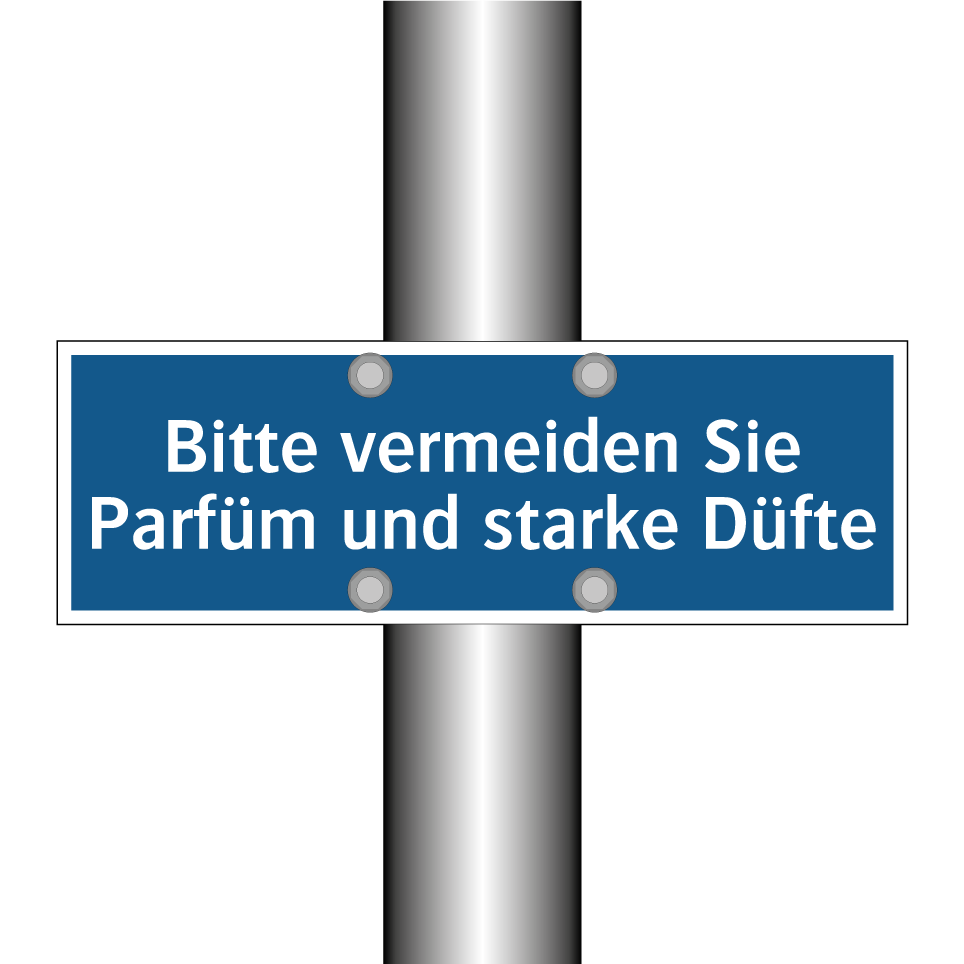 Gebotsschild mit dem Text Bitte vermeiden Sie Parfüm und starke Düfte