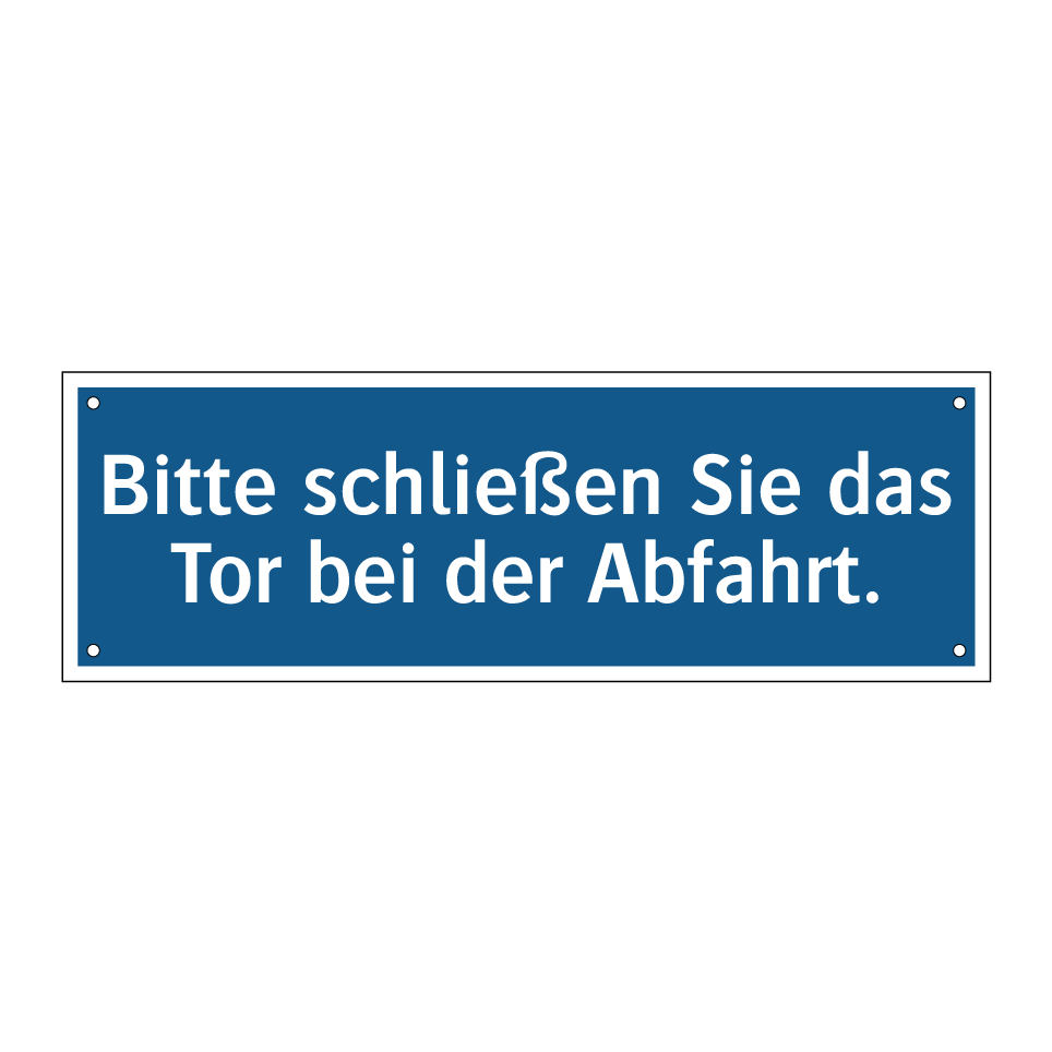 Gebotsschild mit dem Text Bitte schließen Sie das Tor bei der Abfahrt.