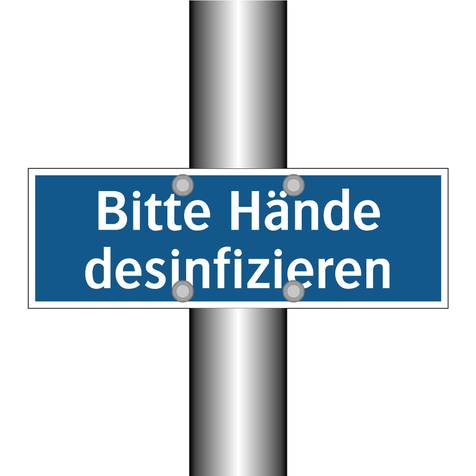Gebotsschild mit dem Text Bitte Hände desinfizieren