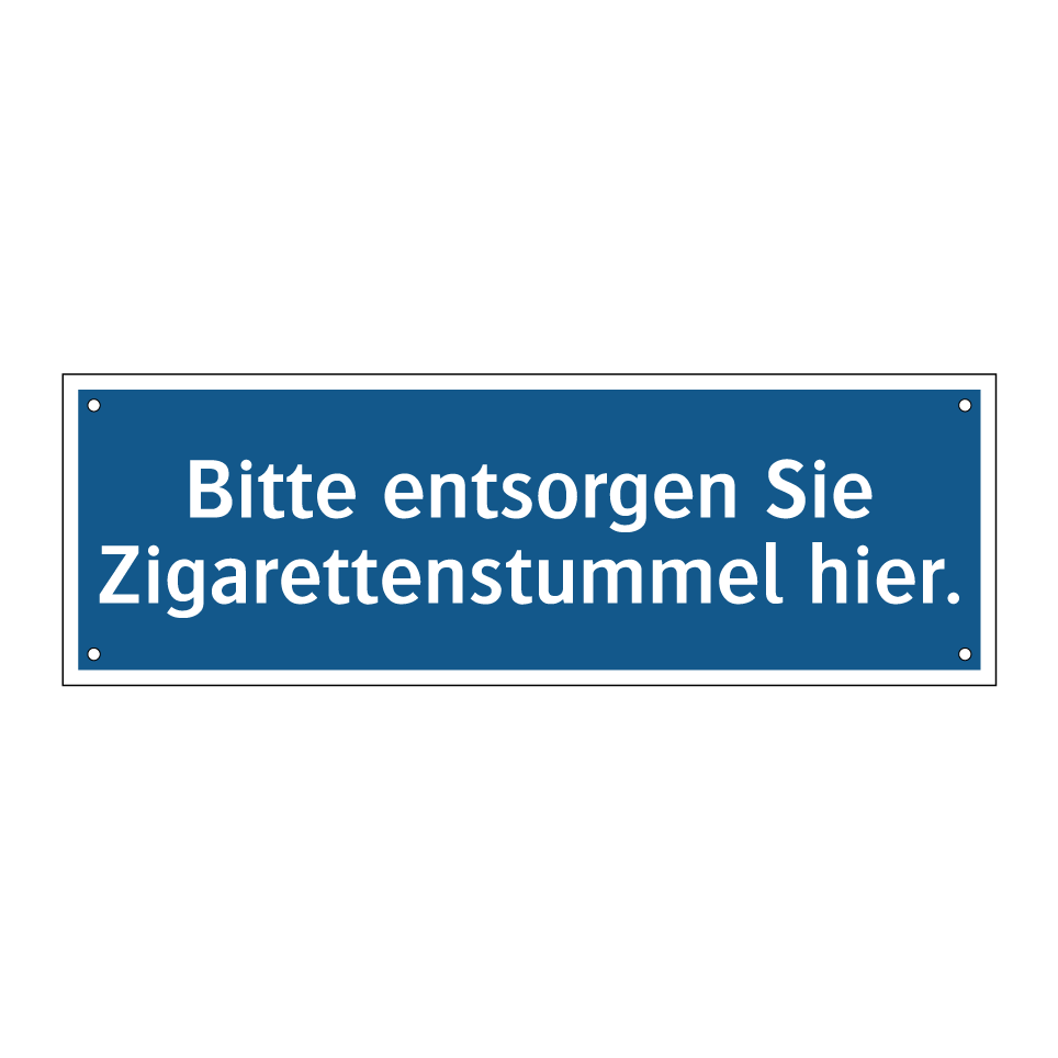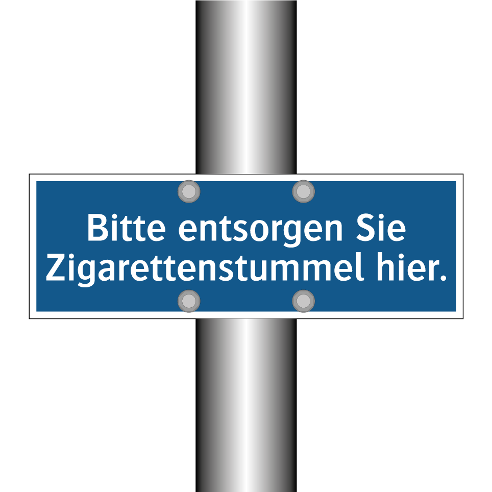 Gebotsschild mit dem Text Bitte entsorgen Sie Zigarettenstummel hier.
