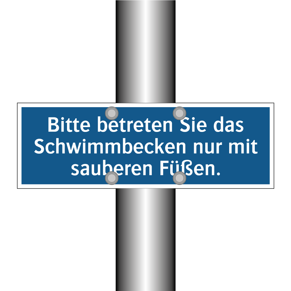 Gebotsschild mit dem Text Bitte betreten Sie das Schwimmbecken nur mit sauberen Füßen.