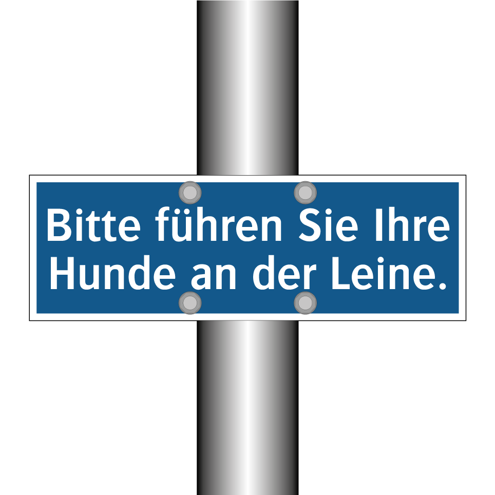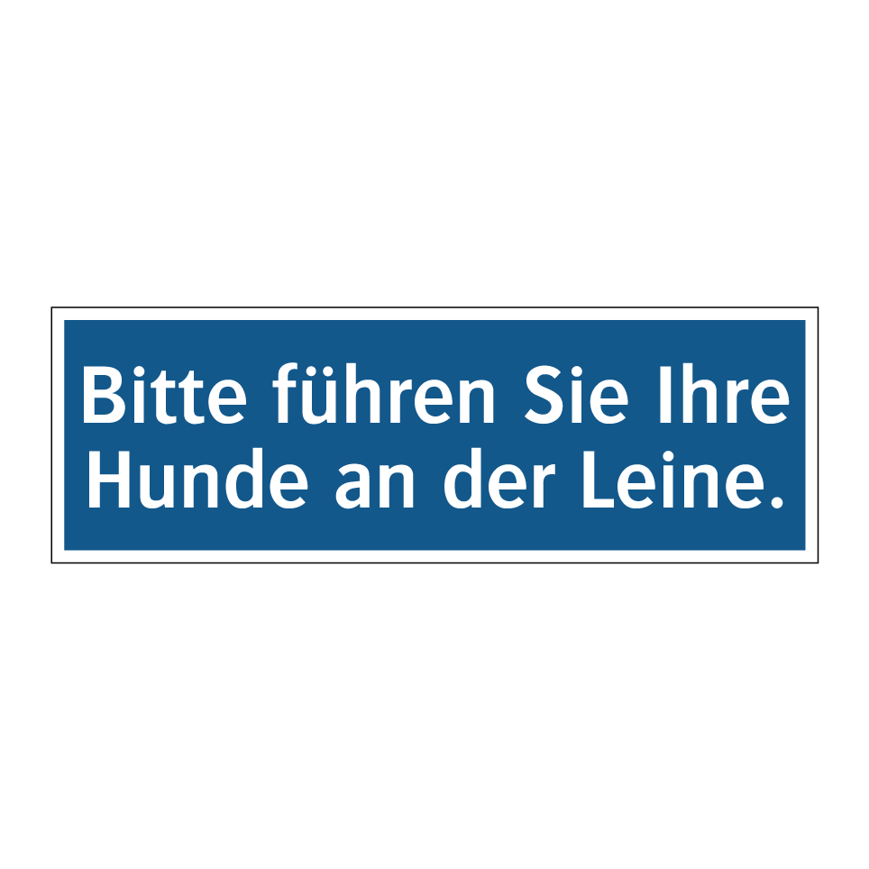 Gebotsschild mit dem Text Bitte führen Sie Ihre Hunde an der Leine.